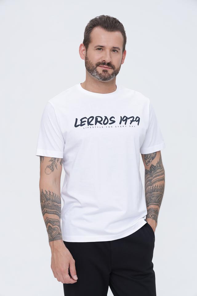 Футболка имеет прямой крой, короткий рукав и круглый вырез горловины. На груди расположен стильный принт с названием бренда и годом основания – “LERROS 1979”. Этот принт добавляет футболке индивидуальности и узнаваемости.