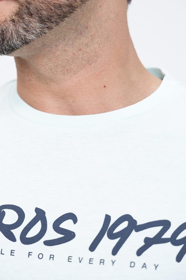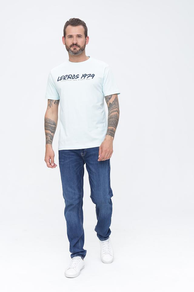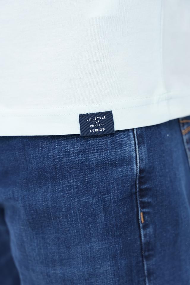 На передней части футболки расположен стильный принт с логотипом бренда Lerros 1979 и надписью Lifestyle for Every Day, выполненный в тёмно-синем цвете. Это придает футболке современный и узнаваемый вид.