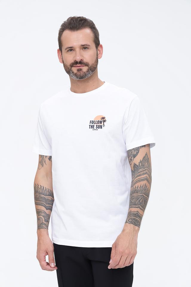 Белая футболка Lerros с оригинальным принтом "Follow the Sun" станет отличным дополнением к вашему образу. Изготовлена из 100% хлопка, обеспечивая комфорт и воздухопроницаемость. Состав: хлопок 100%
