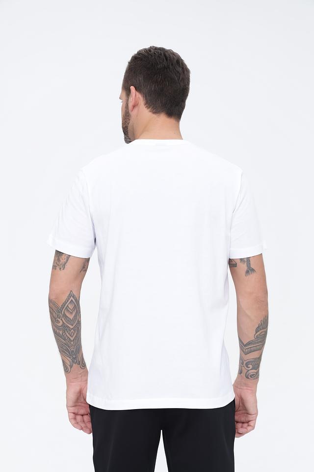 Футболка изготовлена из высококачественного 100% хлопка, что обеспечивает приятные тактильные ощущения и отличную воздухопроницаемость. Она идеально подходит для повседневной носки в теплую погоду. Эта модель станет отличным выбором для тех, кто ценит комфорт, стиль и качество.