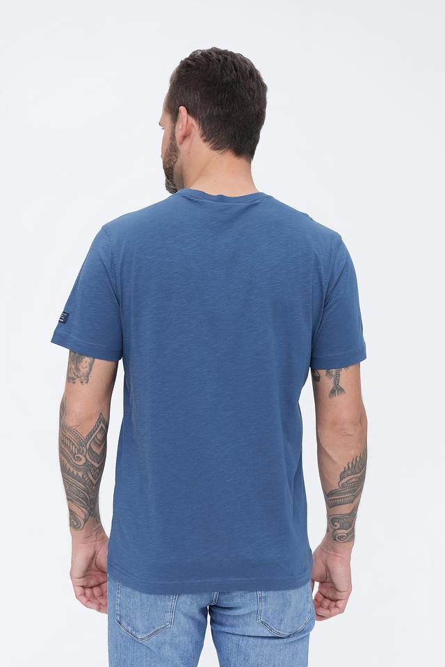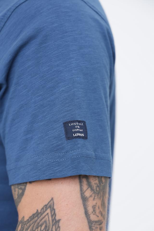 Цвет футболки – насыщенный синий, который легко сочетается с различными элементами гардероба. Короткий рукав и круглый вырез горловины делают эту футболку универсальной для повседневной носки. На левом рукаве присутствует небольшой логотип бренда Lerros.