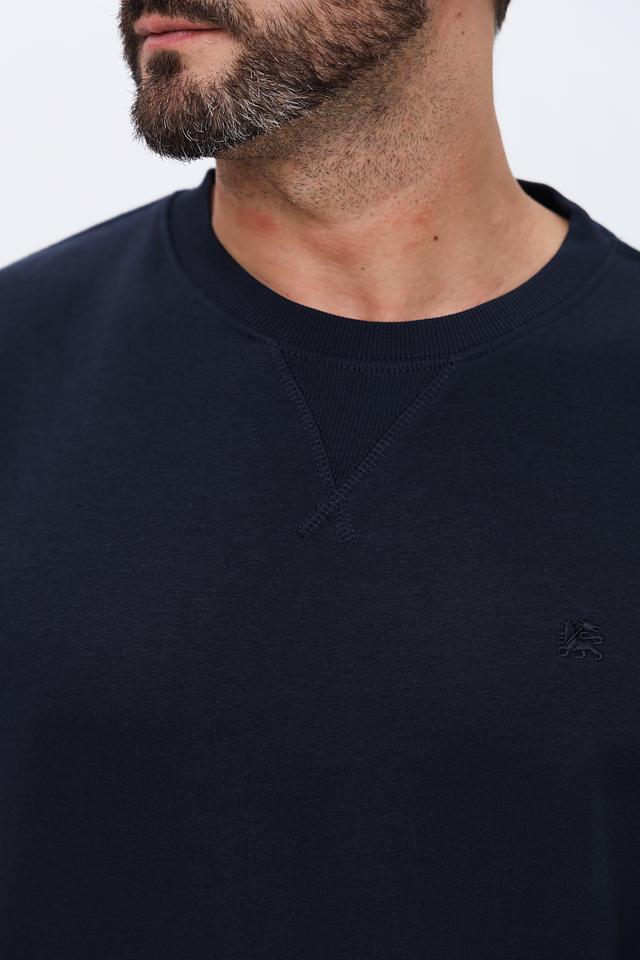 Джемпер имеет классический крой с круглым вырезом горловины и длинными рукавами. На левой стороне груди расположена небольшая вышивка с логотипом бренда, что придает изделию узнаваемый вид.