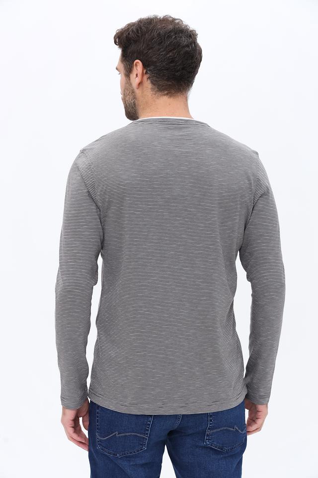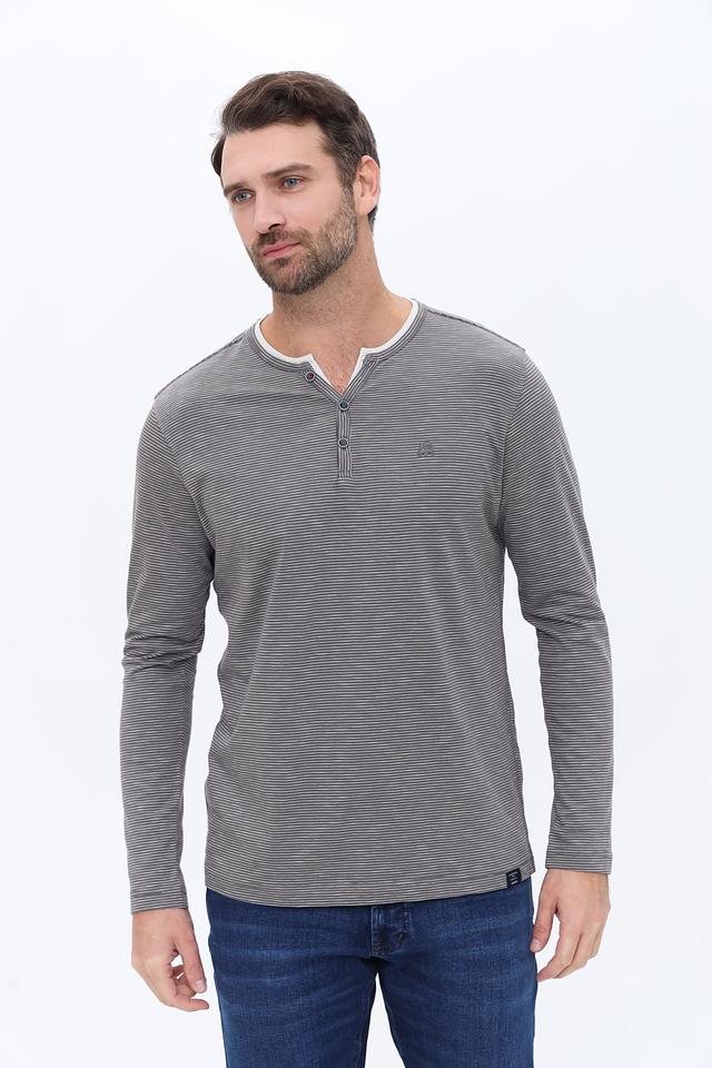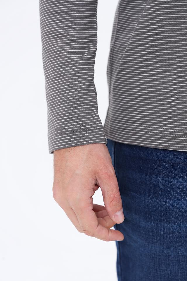 Этот лонгслив от Lerros станет отличным дополнением к вашему гардеробу. Выполнен в сером цвете с вертикальной полоской, что придает ему современный вид.