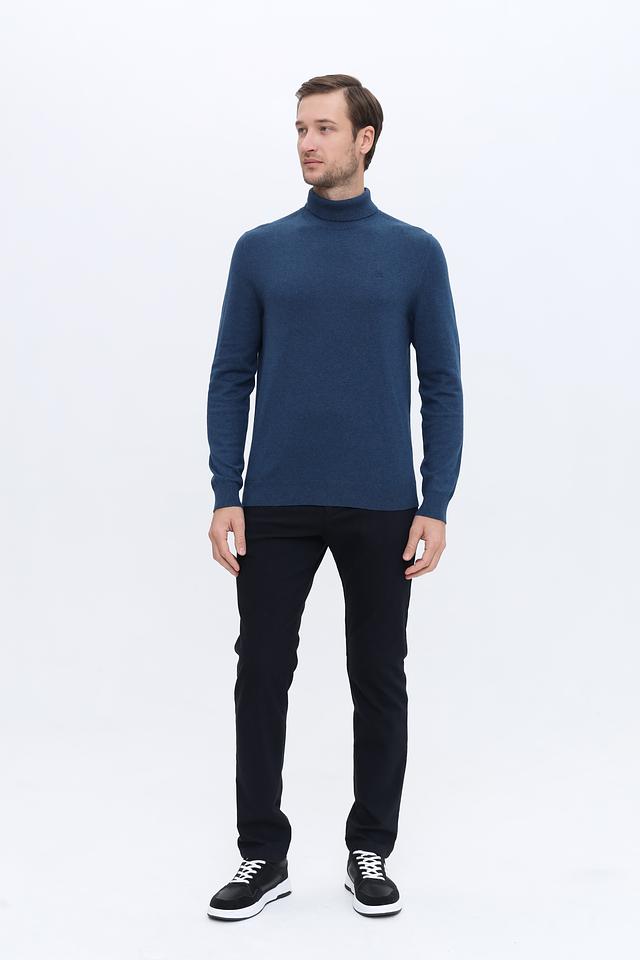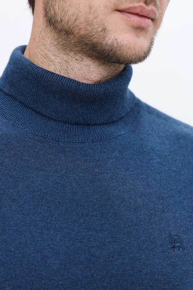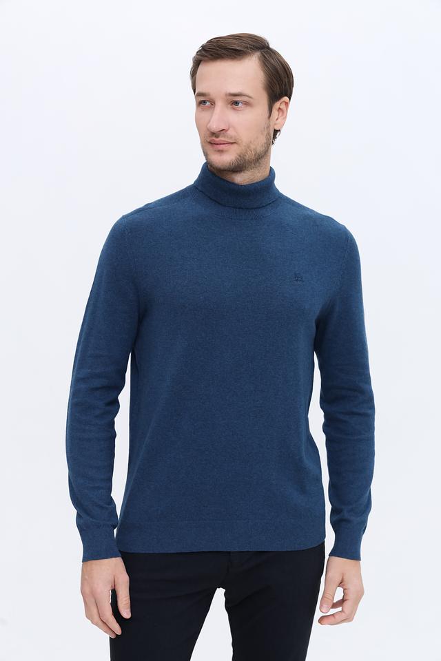 Классический синий цвет делает эту модель универсальной и легко сочетаемой с другими элементами гардероба. Водолазка имеет облегающий крой, который подчеркивает фигуру, но при этом не сковывает движений. Высокий воротник обеспечивает дополнительное тепло и защиту от холода.