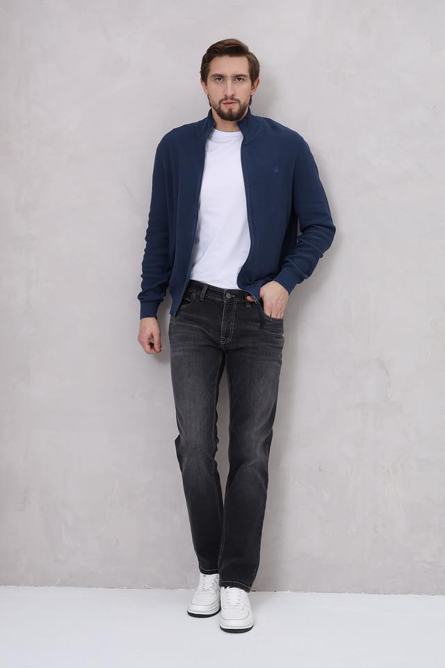 Модель имеет классический крой и застегивается на молнию. Воротник-стойка добавляет кардигану элегантности.