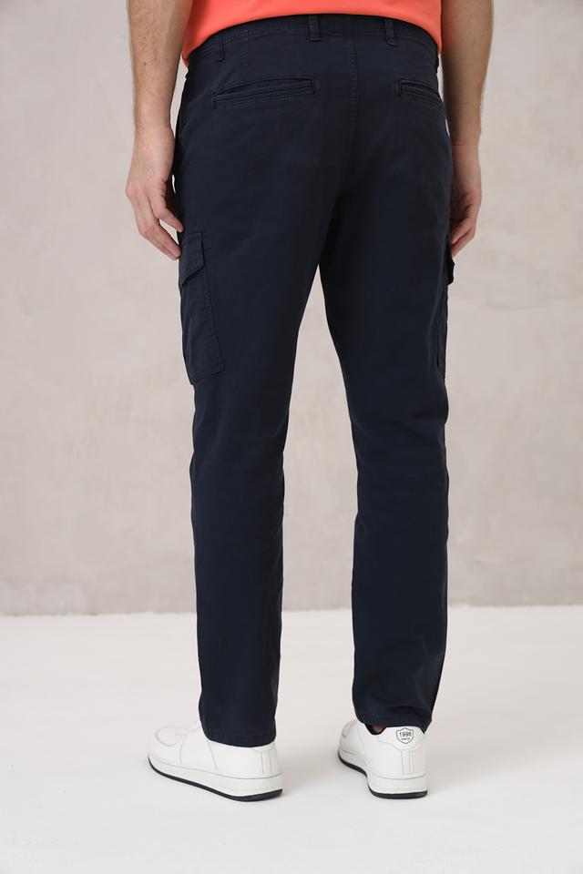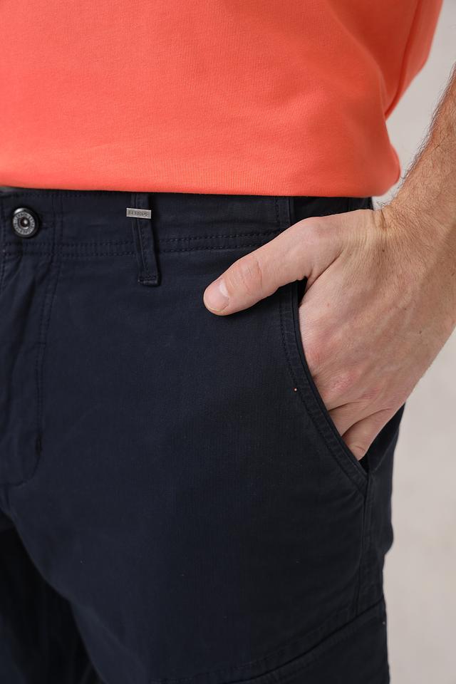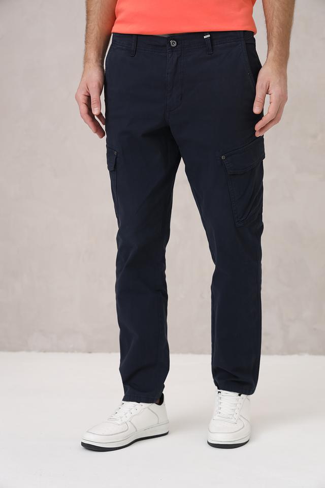 Мужские брюки карго от Lerros выполнены в классическом синем цвете. Модель отличается удобным кроем и функциональностью, благодаря наличию накладных карманов. Брюки изготовлены из высококачественного хлопка с добавлением эластана, что обеспечивает комфорт при носке и сохранение формы.