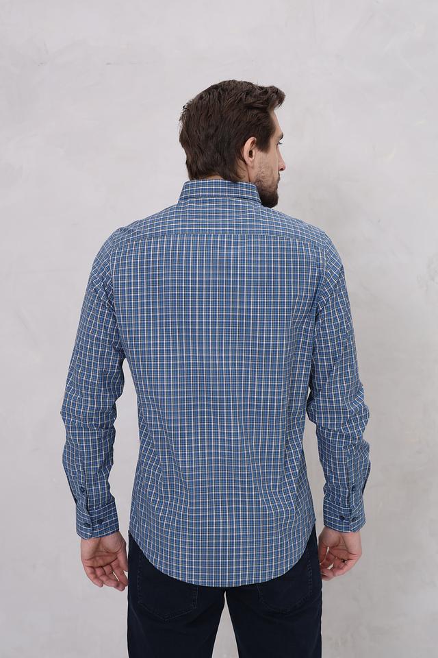 Рубашка имеет длинные рукава и стандартный крой, обеспечивающий свободу движений. Воротник рубашки выполнен в классическом стиле. Застежка на пуговицах.