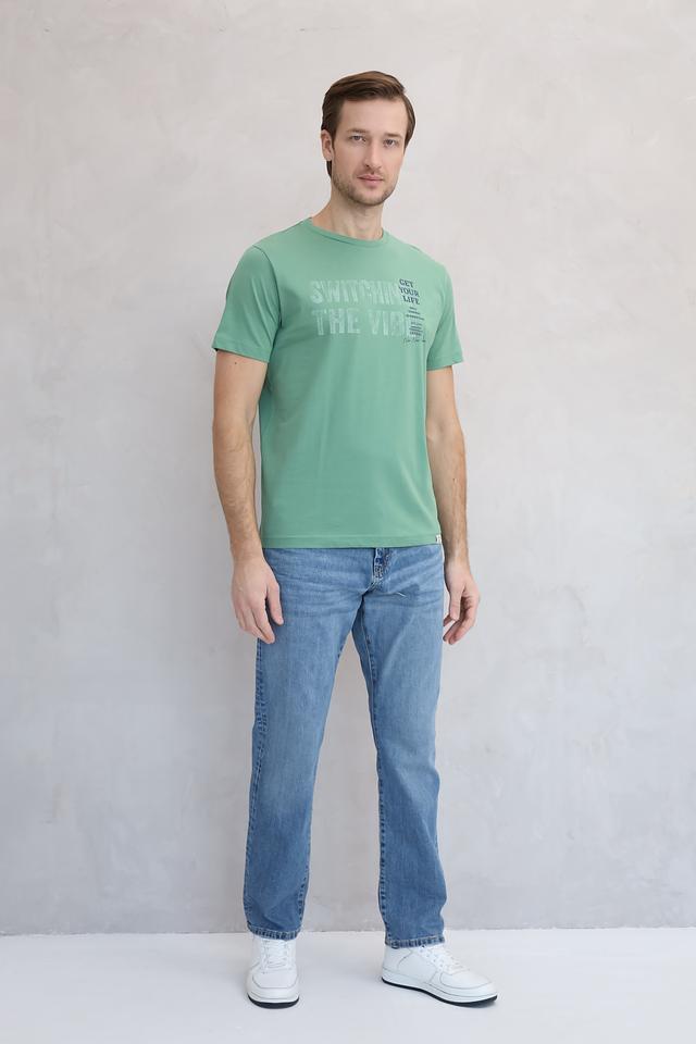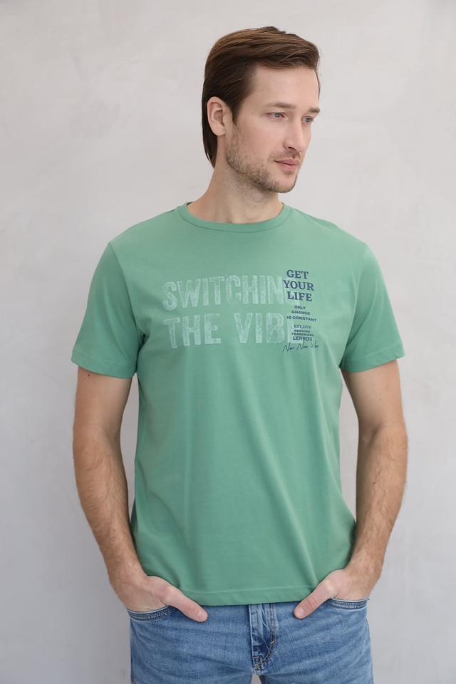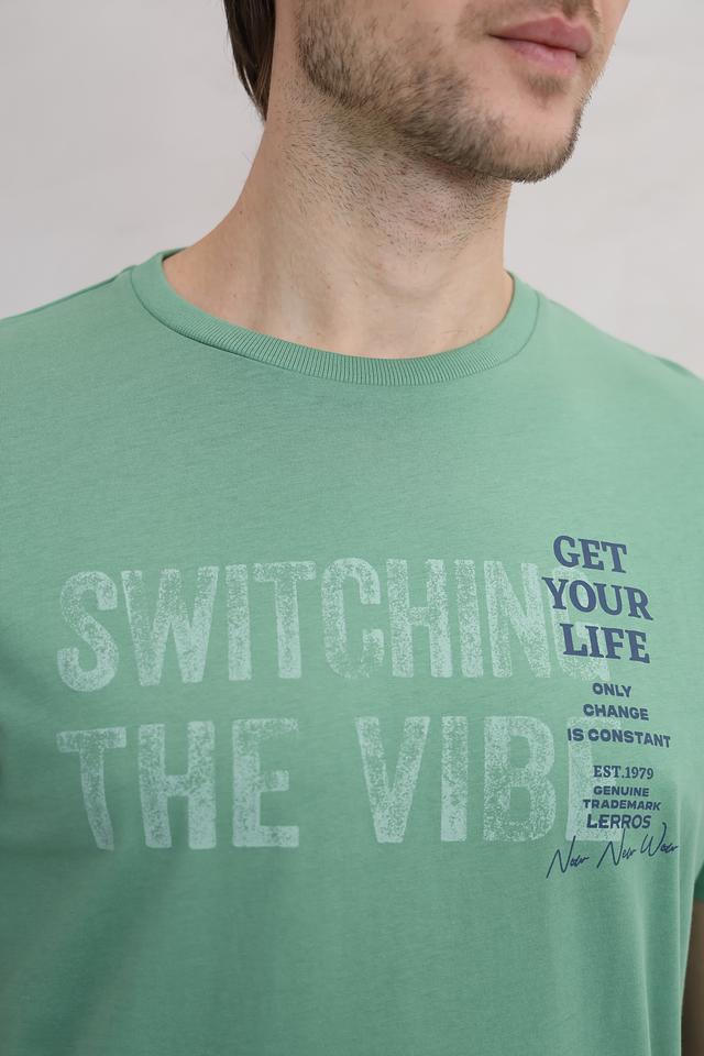 Мужская футболка Lerros зелёного цвета с оригинальным принтом. Изготовлена из 100% хлопка, обеспечивающего комфорт и воздухопроницаемость. Стильный и удобный вариант для повседневной носки. Состав: хлопок 100%