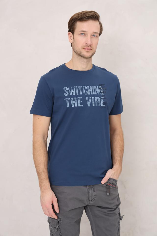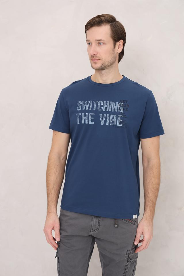 Мужская футболка Lerros синего цвета с оригинальным принтом "Switching the vibe". Изготовлена из 100% хлопка, обеспечивающего комфорт и воздухопроницаемость. Стильный и удобный вариант для повседневной носки. Состав: хлопок 100%