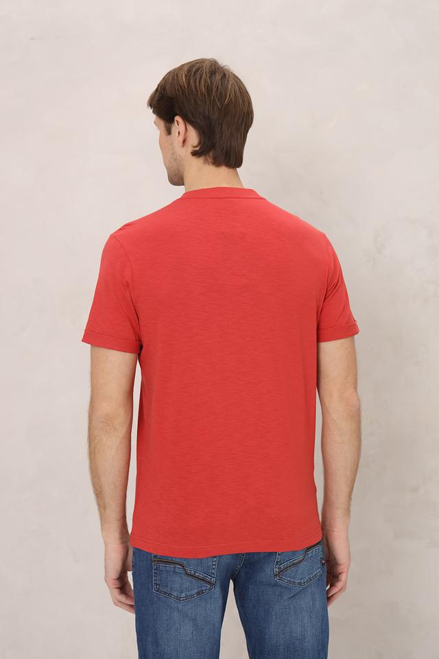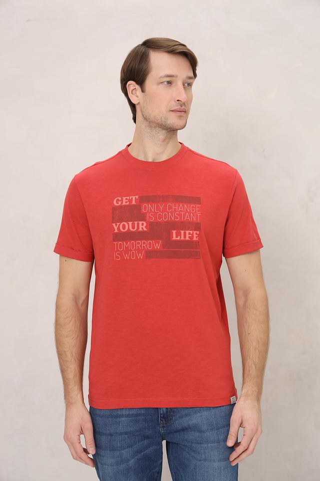 Представляем мужскую футболку от бренда Lerros. Эта футболка выполнена в насыщенном красном цвете и станет ярким акцентом в вашем гардеробе.