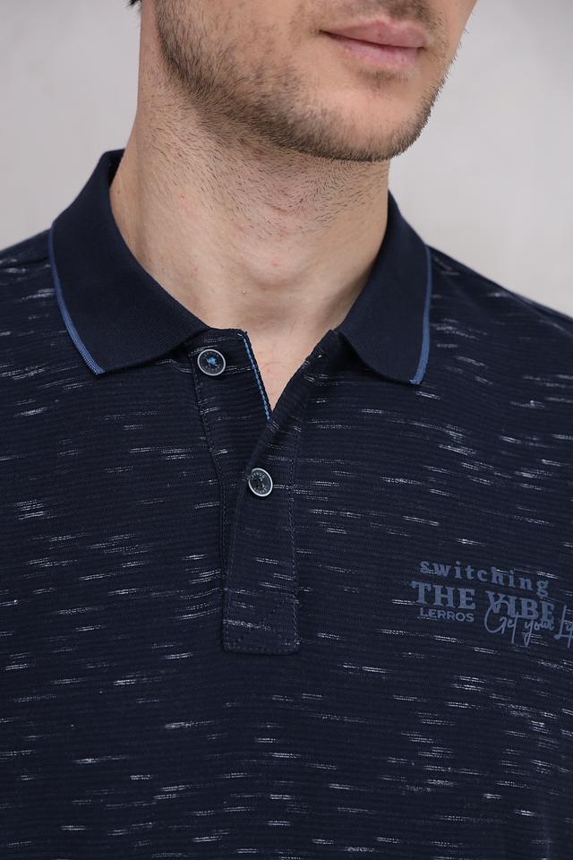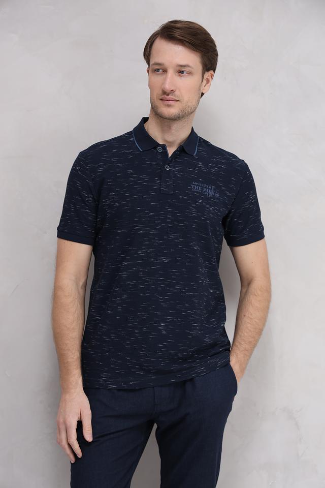 Мужское поло Lerros темно-синего цвета с меланжевым эффектом и оригинальным принтом. Изготовлено из высококачественного хлопка с добавлением полиэстера для комфорта и долговечности. Состав: хлопок 98%, полиэстер 2%