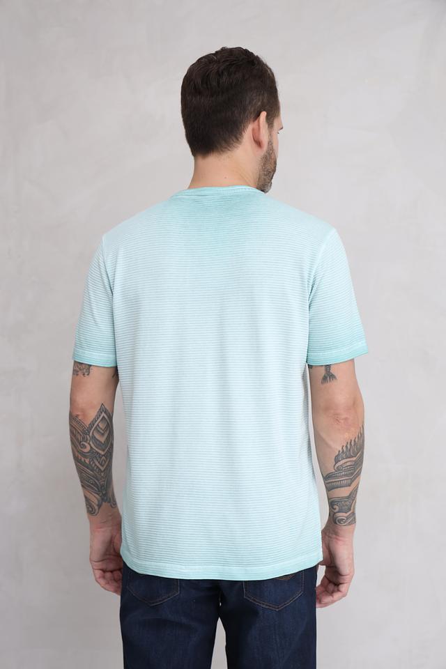 Футболка выполнена в нежном мятном цвете с деликатной текстурой в полоску, что придает ей особый шарм. На груди расположена небольшая вышивка с логотипом бренда. Эта футболка станет отличным дополнением к вашему гардеробу и подойдет для создания различных образов – от повседневных до более элегантных.