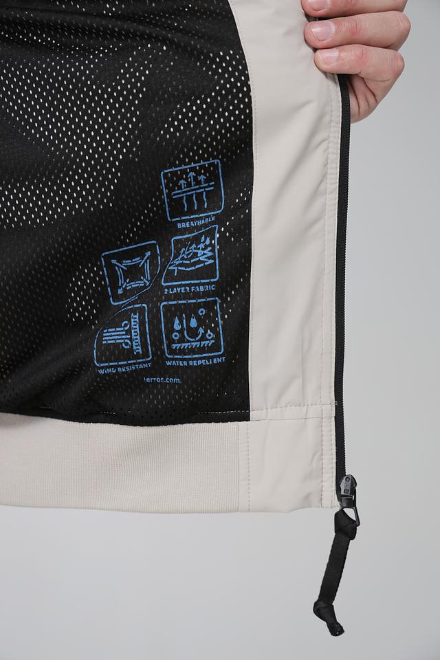 Ветровка имеет удобную застежку-молнию, воротник-стойку и боковые карманы. Прямой крой обеспечивает комфортную посадку по фигуре, не сковывая движений. Минималистичный дизайн без лишних деталей подчеркивает современный стиль.