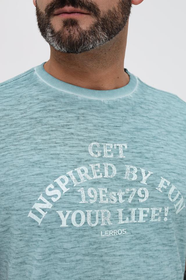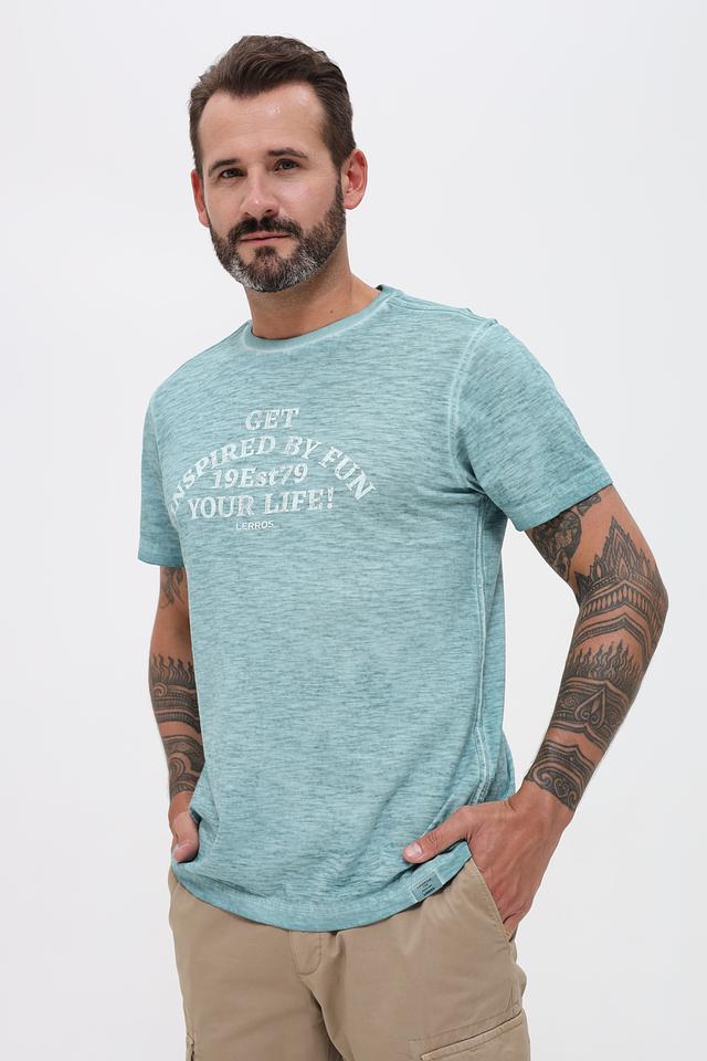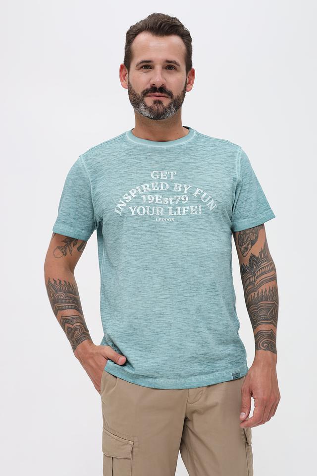 Мужская футболка Lerros мятного цвета с оригинальным принтом на лицевой стороне. Изготовлена из 100% хлопка, обеспечивающего комфорт и воздухопроницаемость. Стильный и удобный вариант для повседневной носки. Состав: хлопок 100%