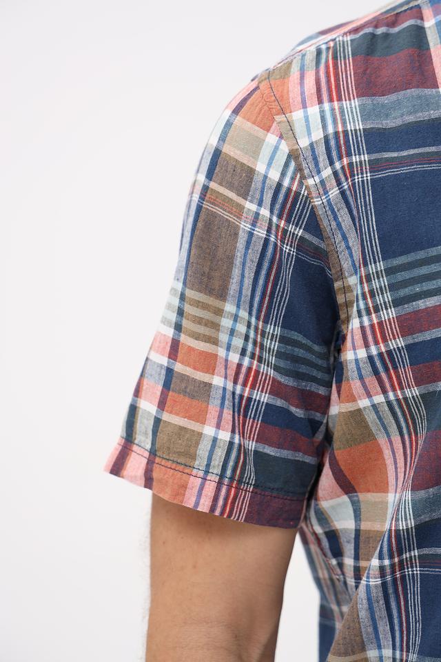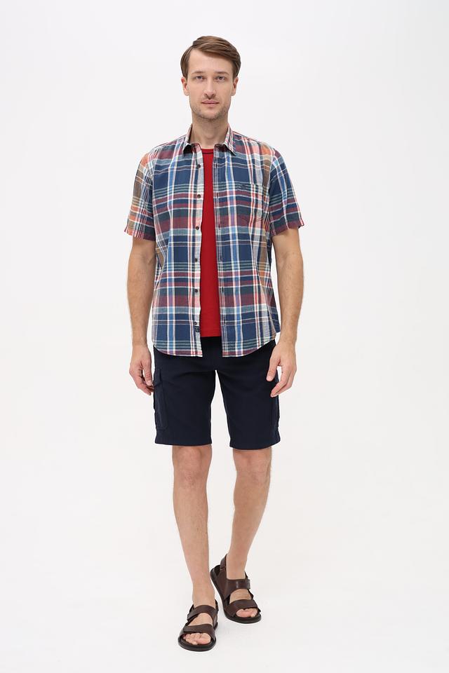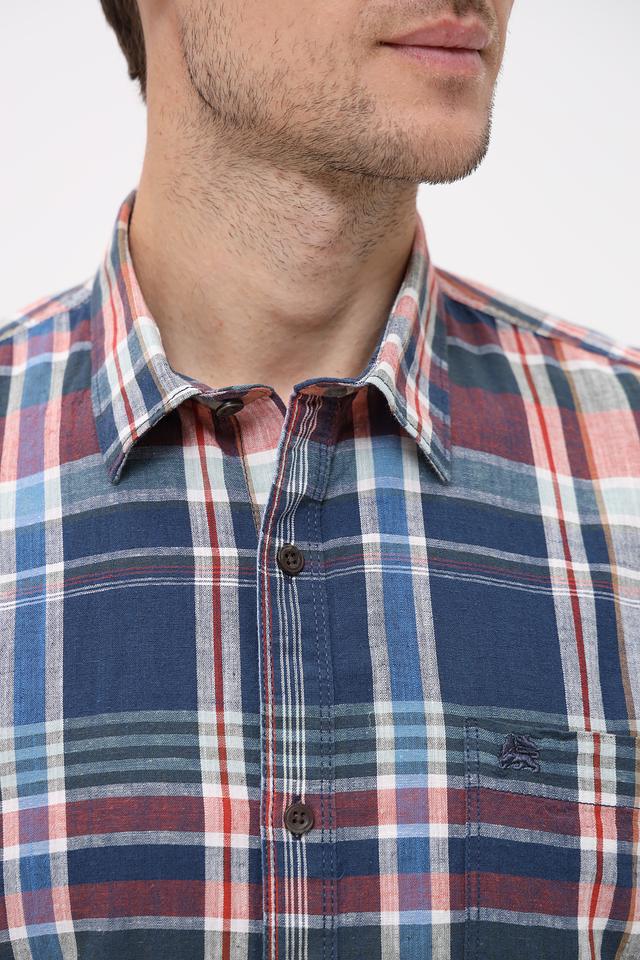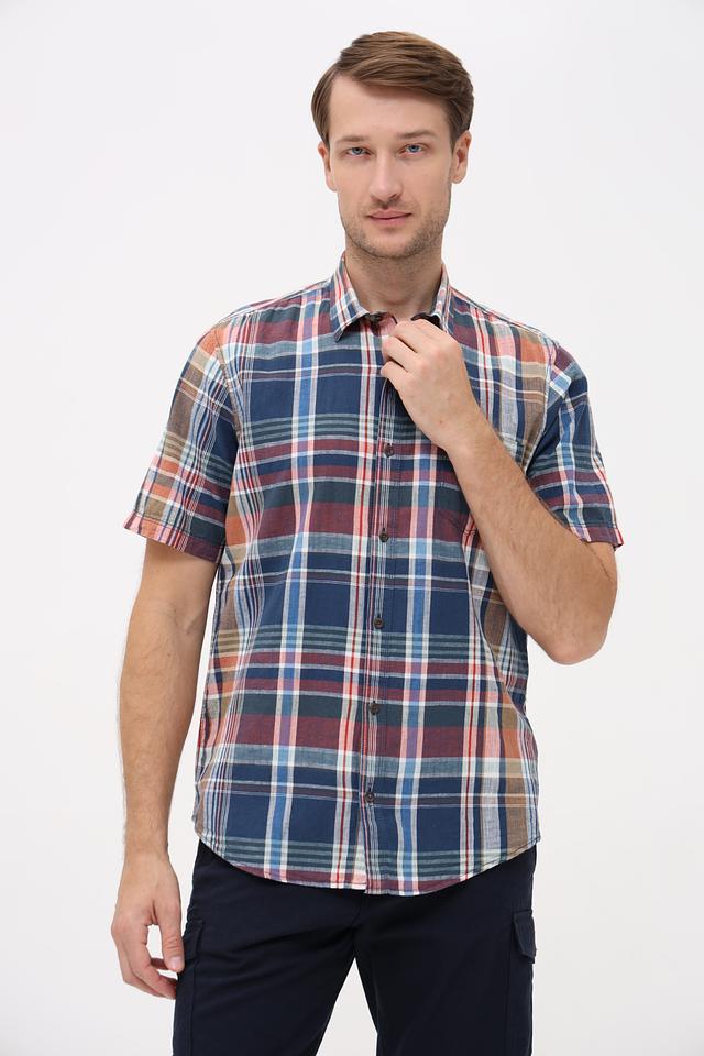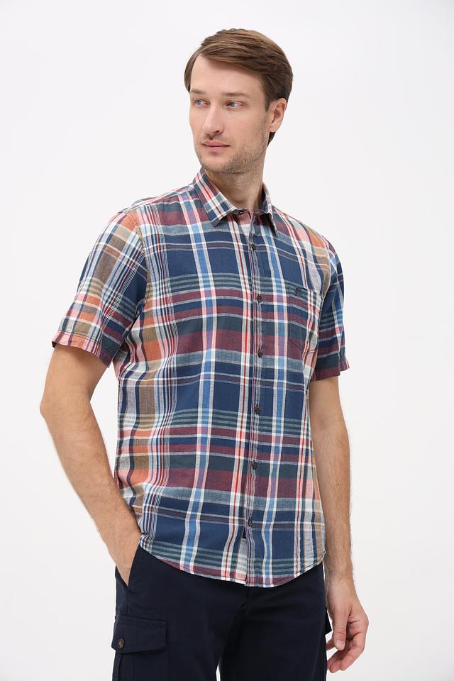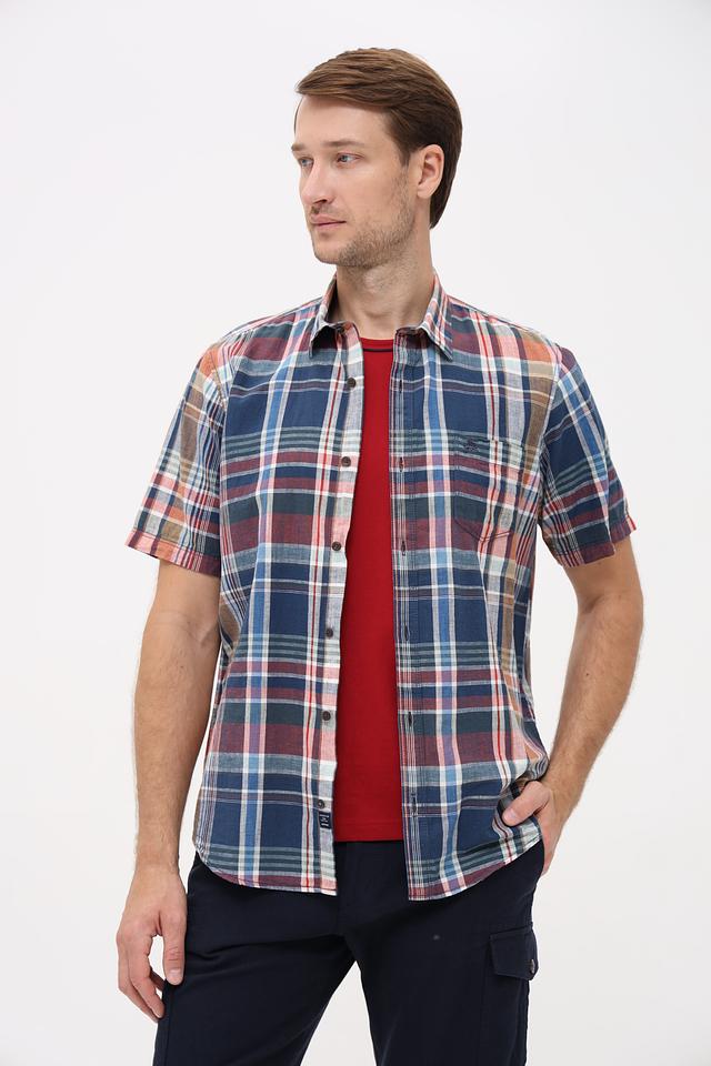 Мужская рубашка Lerros с коротким рукавом выполнена в классической клетке синих, красных и бежевых оттенков. Изготовлена из натурального хлопка с добавлением льна, что обеспечивает комфорт и воздухопроницаемость. Состав: хлопок 70%, лен 30%