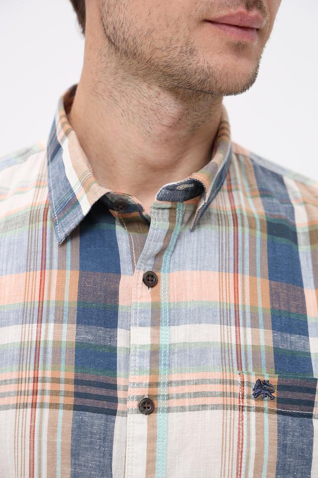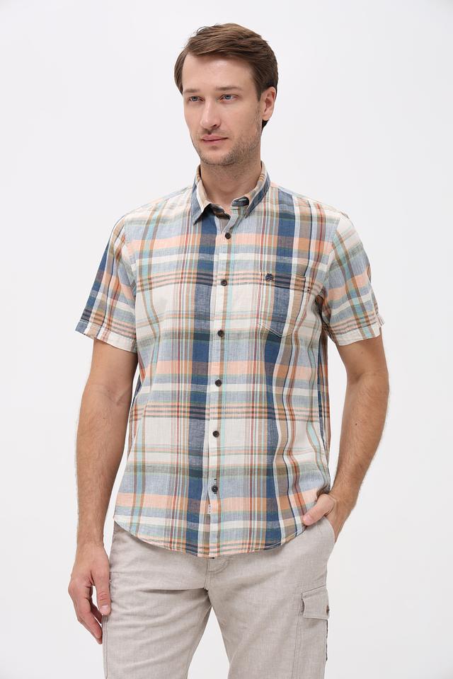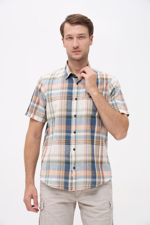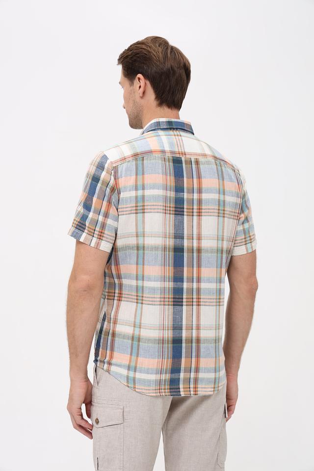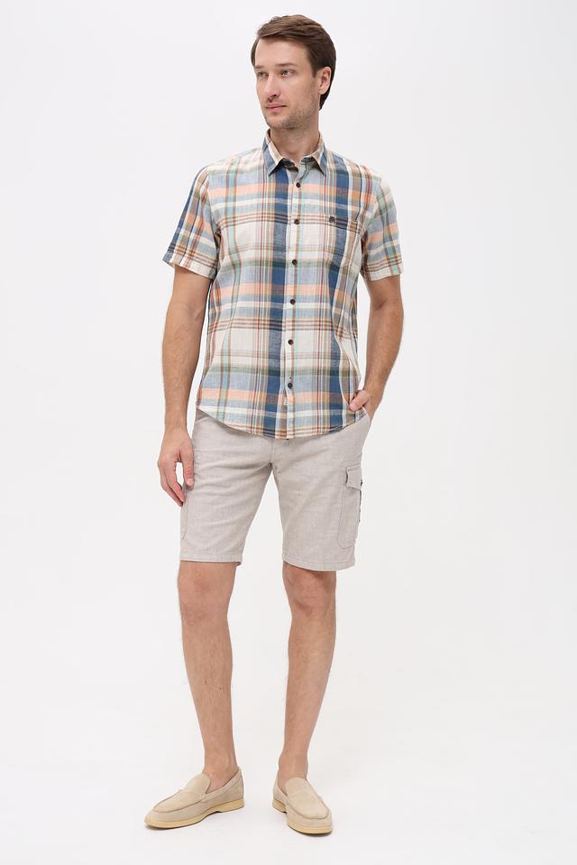 Мужская рубашка Lerros с коротким рукавом выполнена в клетку сине-оранжевых оттенков. Изготовлена из натурального хлопка с добавлением льна, что обеспечивает комфорт и воздухопроницаемость. Состав: хлопок 70%, лен 30%