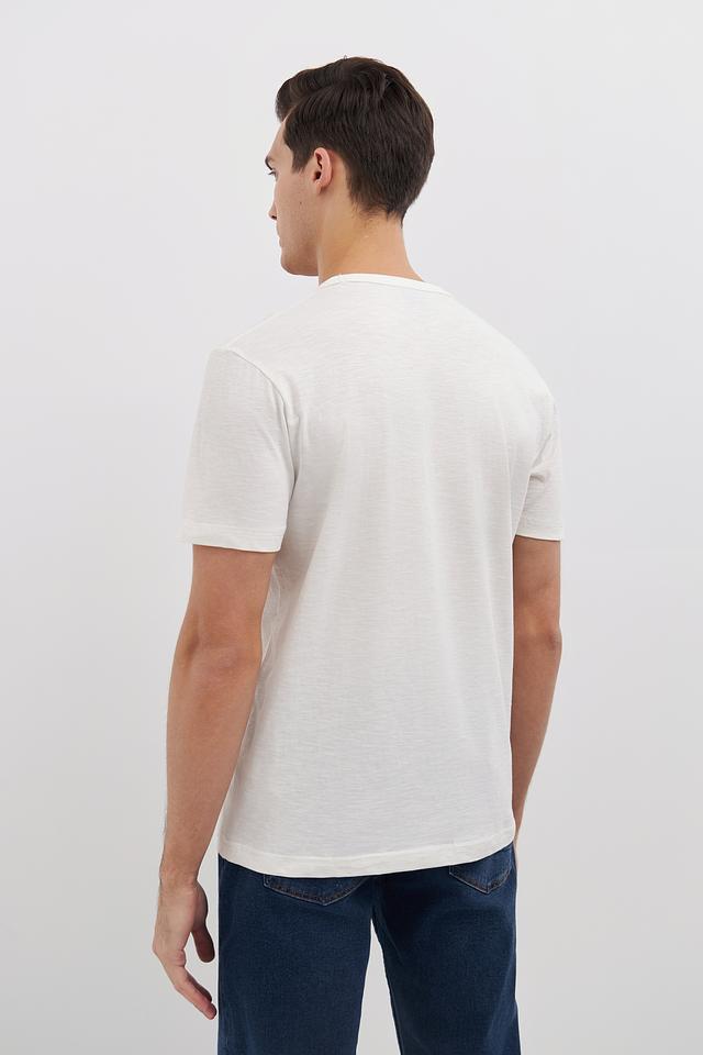 Модель имеет классический крой с круглым вырезом горловины и короткими рукавами. Футболка изготовлена из высококачественного 100% хлопка, который приятен к телу, хорошо пропускает воздух и обеспечивает комфорт в течение всего дня.