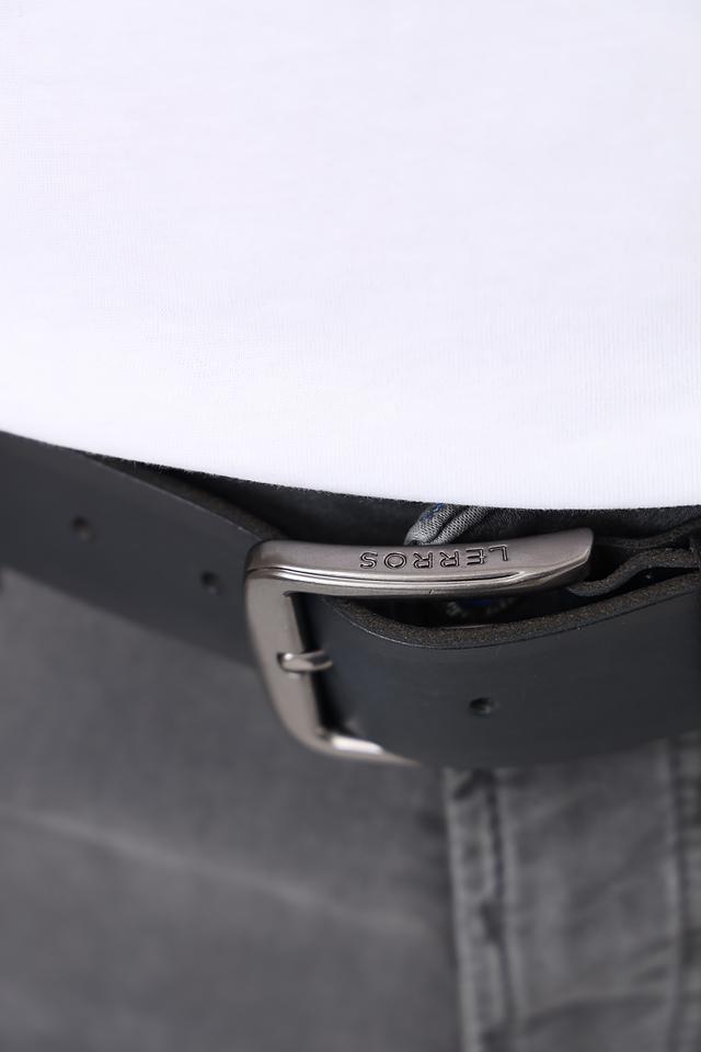 Классическая пряжка из металла с логотипом Lerros надёжно фиксирует ремень. Ремень имеет стандартную ширину и длину, подходящую для большинства мужских брюк и джинсов.