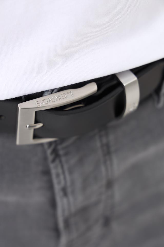 Пряжка ремня выполнена из металла серебристого цвета, с лаконичным дизайном и логотипом бренда Lerros. Ремень имеет стандартную ширину, подходящую для большинства брюк и джинсов.