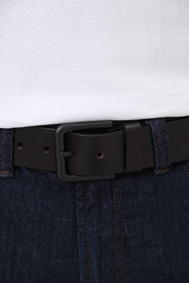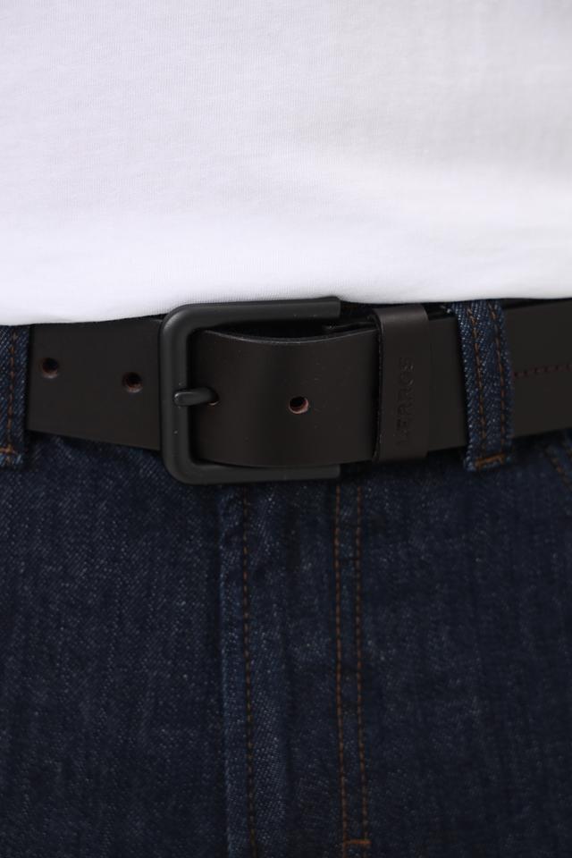 Пряжка ремня выполнена из металла в матовом чёрном цвете, что гармонично сочетается с кожей ремня. Ремень имеет стандартную ширину и длину, подходящую для большинства мужских брюк и джинсов.