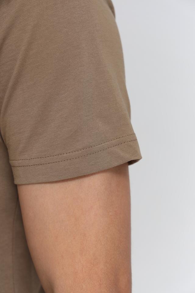 Футболка имеет классический прямой крой, который обеспечивает комфортную посадку по фигуре. Короткий рукав и круглый вырез горловины делают ее идеальным выбором для теплой погоды.