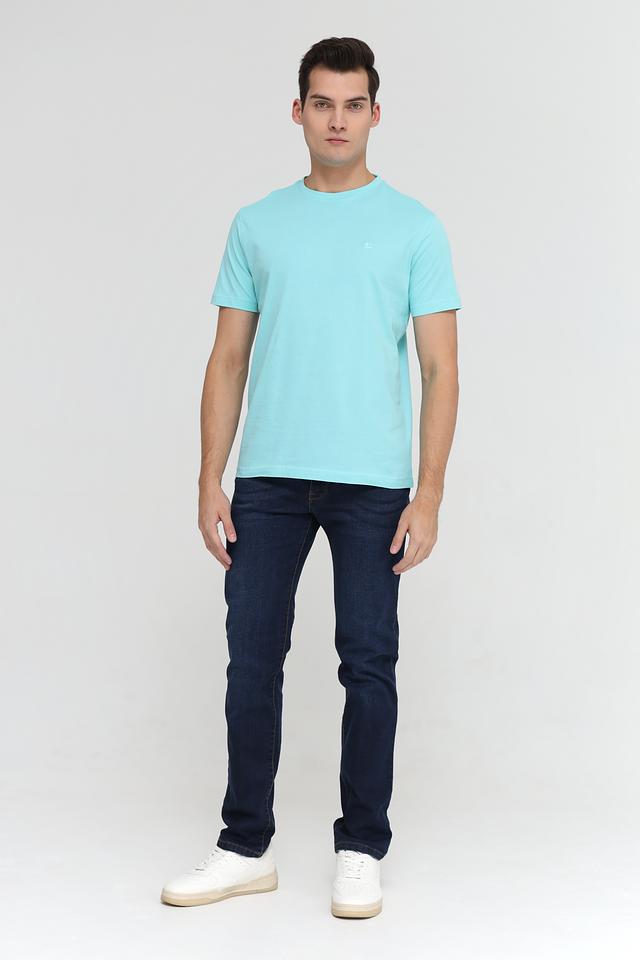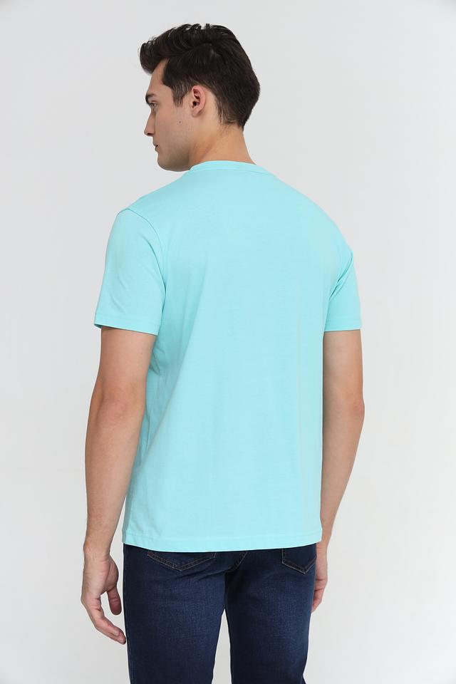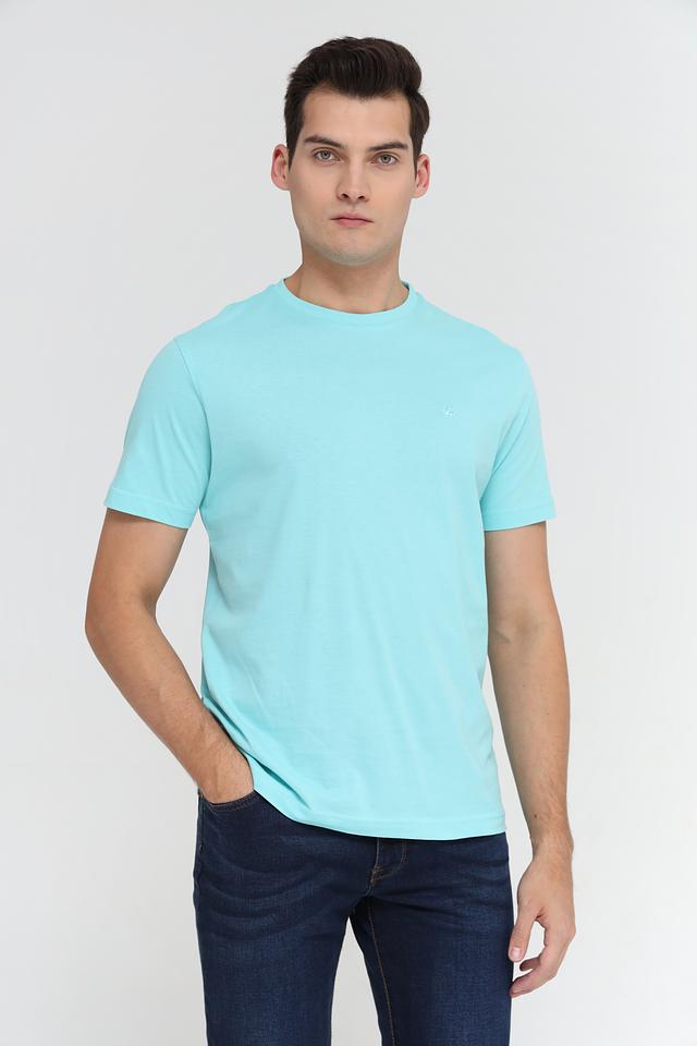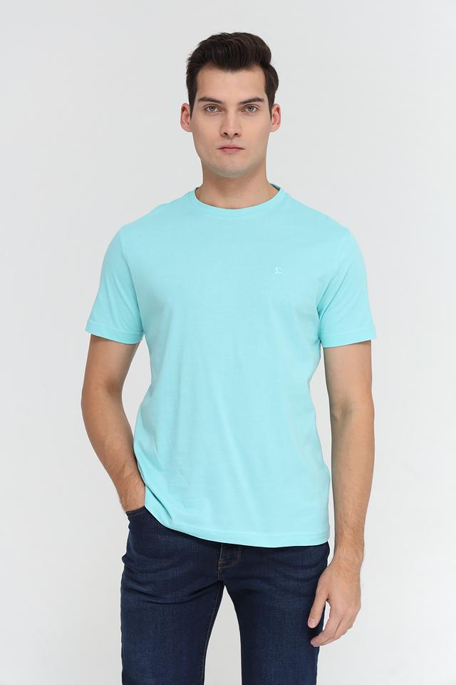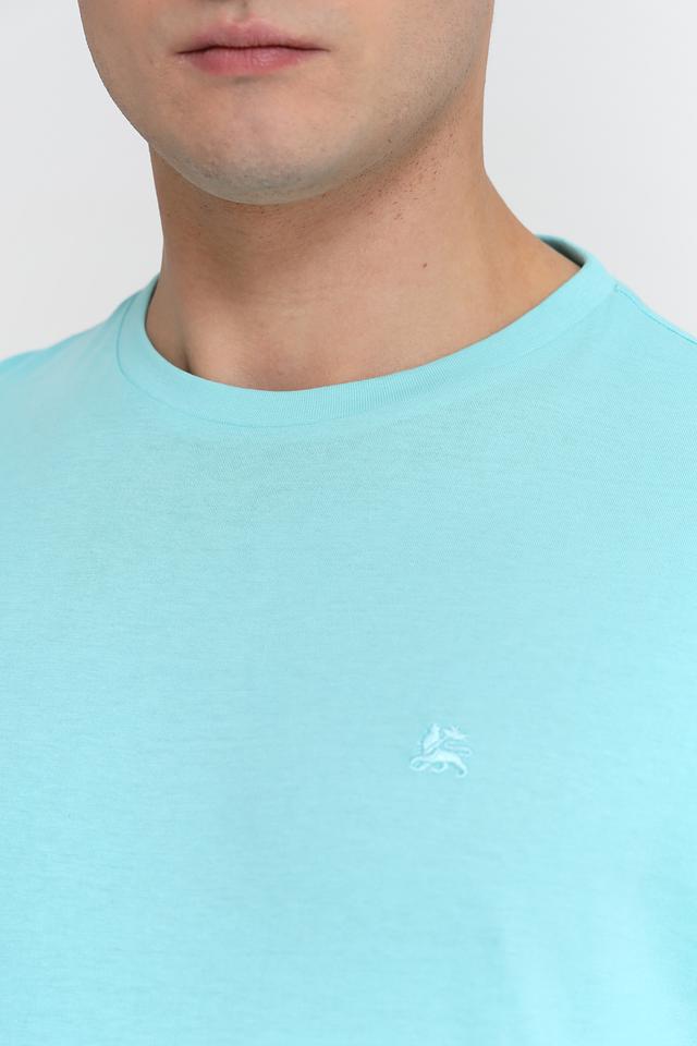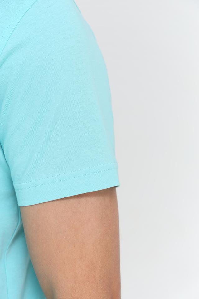 Отличительной особенностью данной модели является её приятный бирюзовый цвет, который легко сочетается с различными элементами гардероба. На груди расположена небольшая вышивка с логотипом бренда, добавляющая футболке индивидуальности.