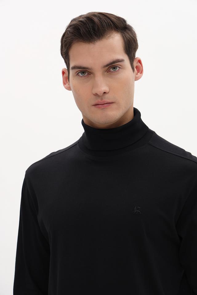 На груди располагается небольшая, едва заметная эмблема бренда. Это придает изделию элегантность и подчеркивает его принадлежность к известному бренду. Водолазка имеет длинные рукава и высокий воротник, который надежно защищает от холода.
