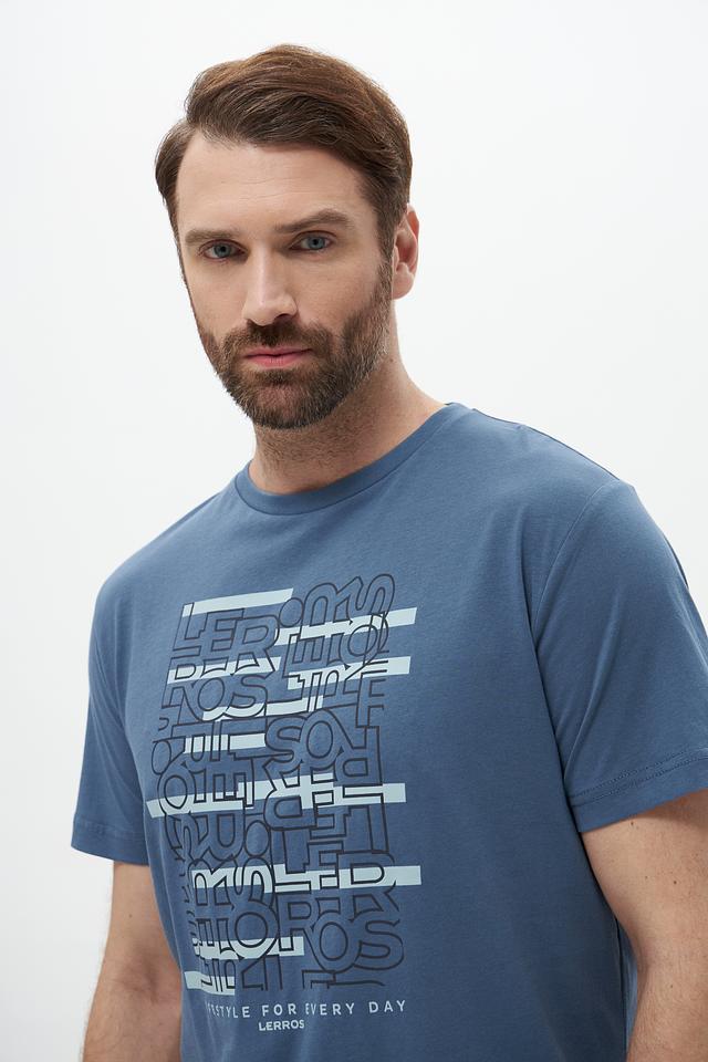 Мужская футболка Lerros голубого цвета с оригинальным принтом. Изготовлена из 100% хлопка, обеспечивающего комфорт и воздухопроницаемость. Отличный выбор для повседневного образа. Состав: хлопок 100%