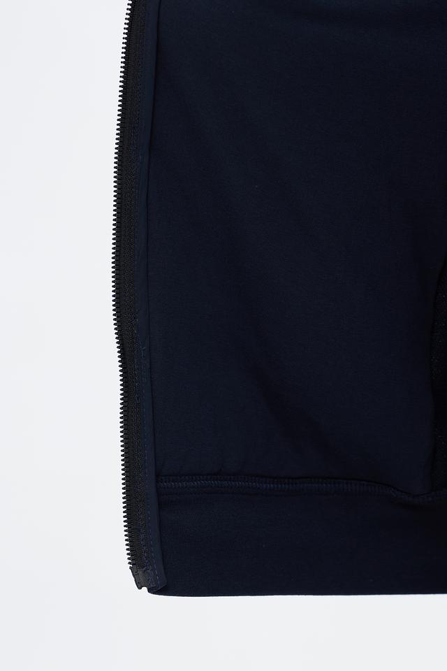 Жилет имеет удобную застежку-молнию, а также боковые карманы для хранения мелочей. Высокий воротник-стойка защищает от ветра. Изготовлен из качественного хлопка с добавлением полиэстера, что обеспечивает комфорт в носке и долговечность изделия.