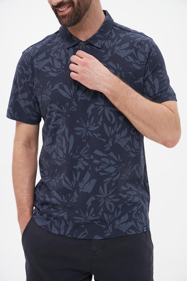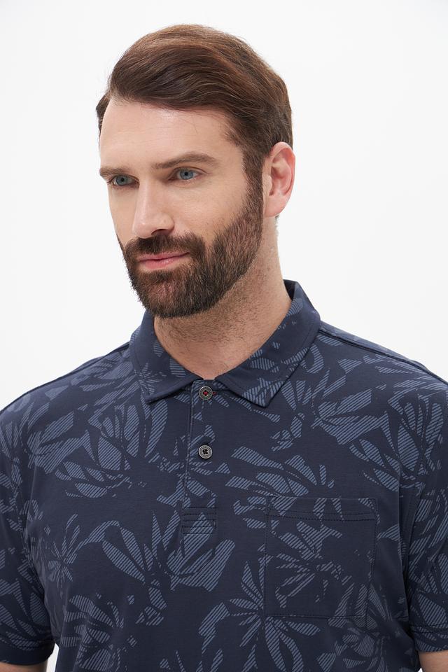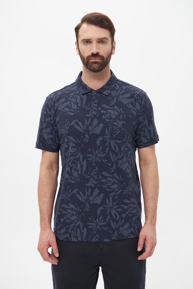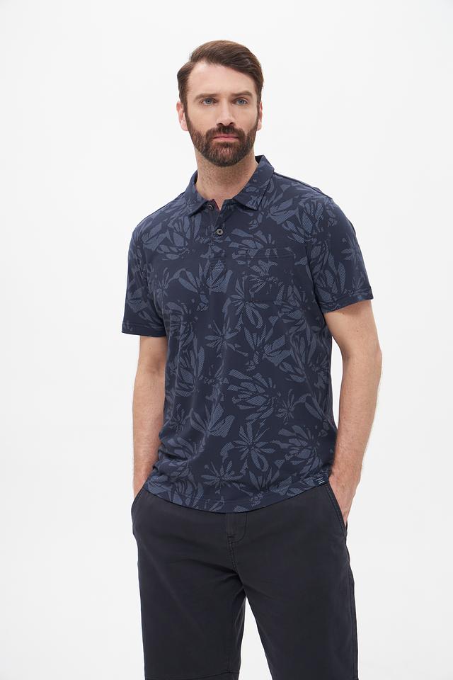 Мужское поло Lerros тёмно-синего цвета с оригинальным цветочным принтом. Изготовлено из мягкого и приятного к телу хлопка с добавлением эластана для комфортной посадки и свободы движений. Состав: хлопок 95%, эластан 5%