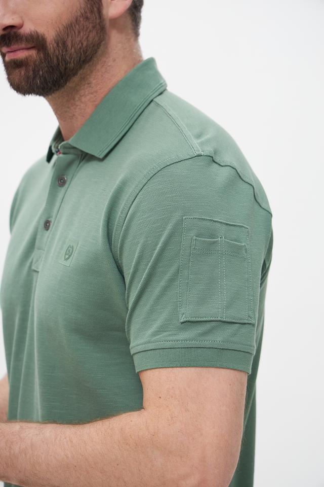 Дизайн поло лаконичен и универсален: короткие рукава, воротник-поло с тремя пуговицами, нагружный карман. Такая рубашка поло станет отличным выбором для создания повседневных образов в стиле casual. Сочетайте ее с джинсами, брюками-чинос или шортами.
