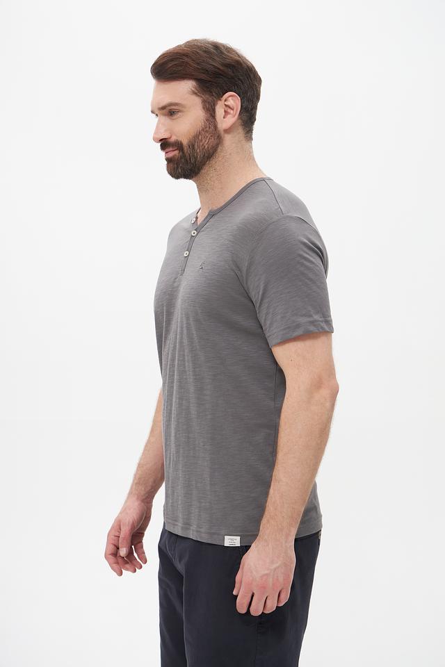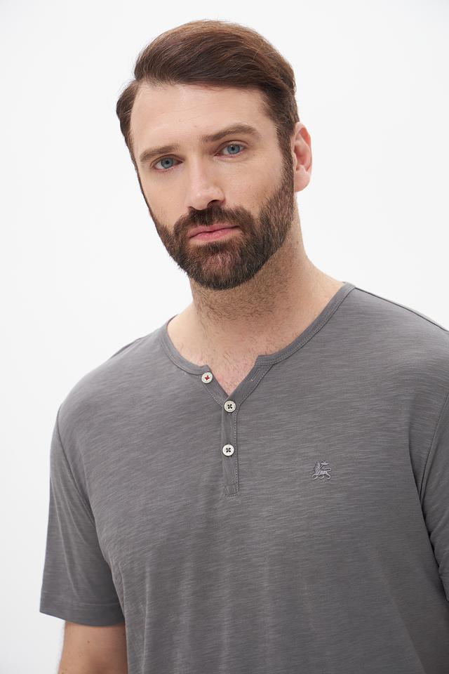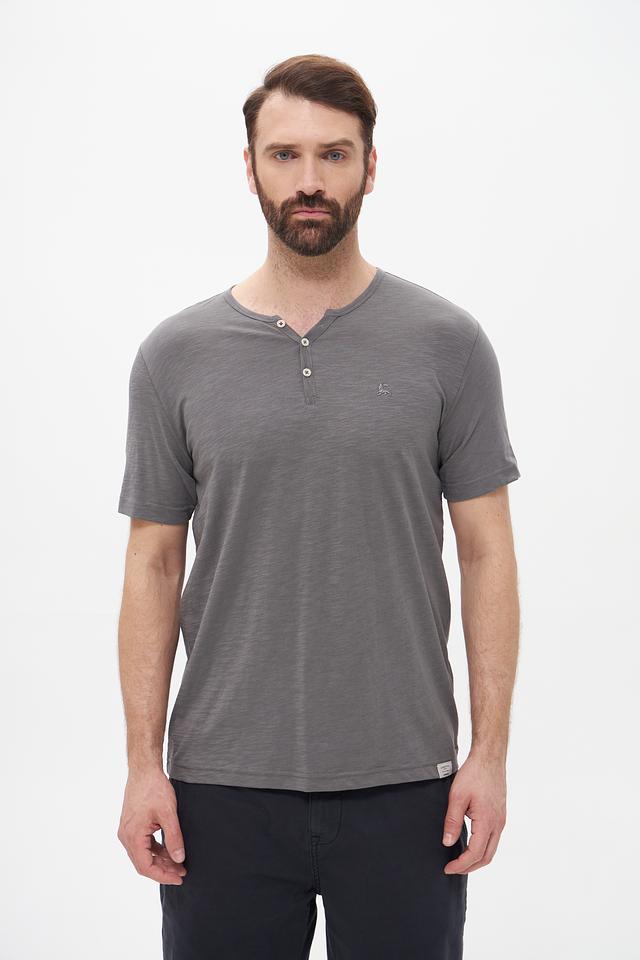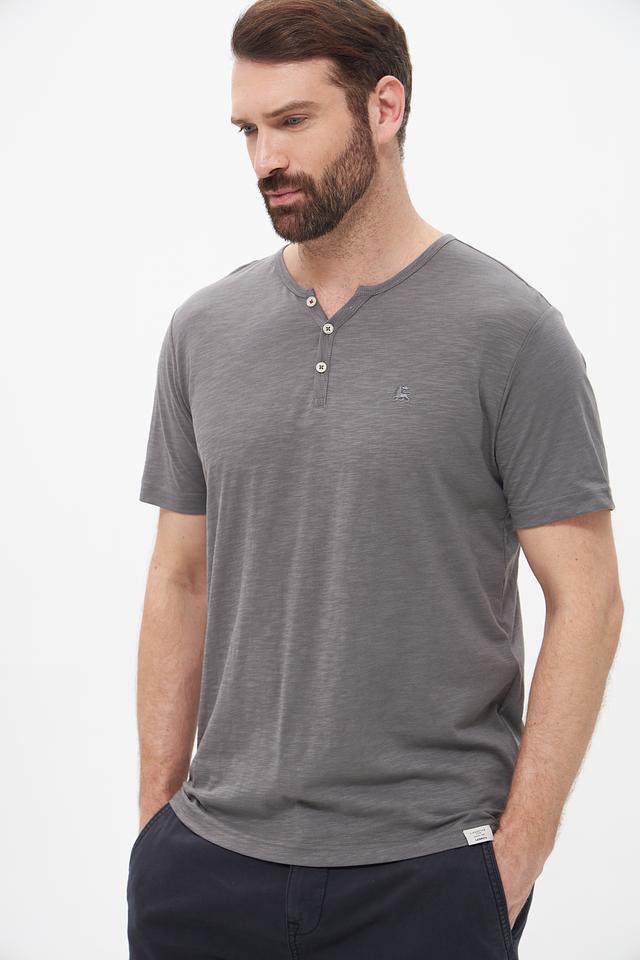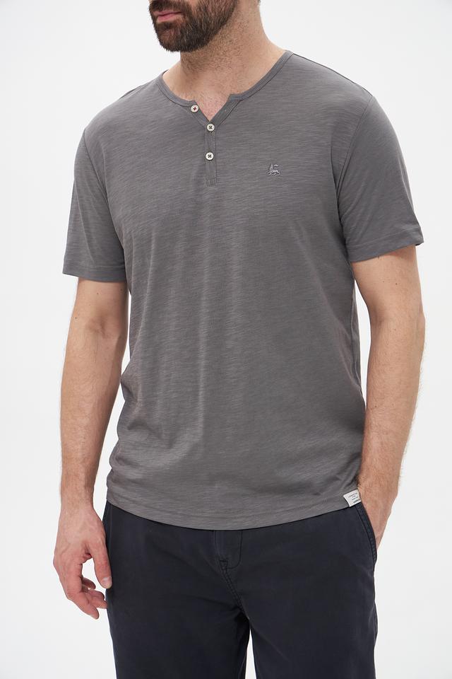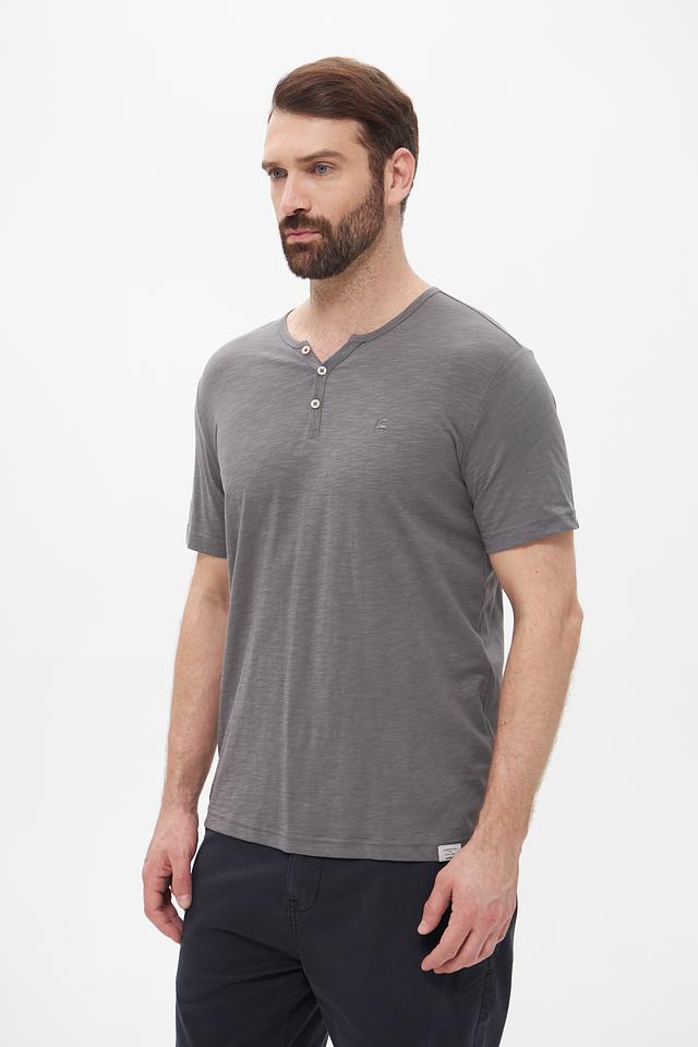 Эта мужская футболка от Lerros выполнена в сером цвете и имеет классический крой. Модель дополнена планкой с несколькими пуговицами, что придает ей особый стиль.