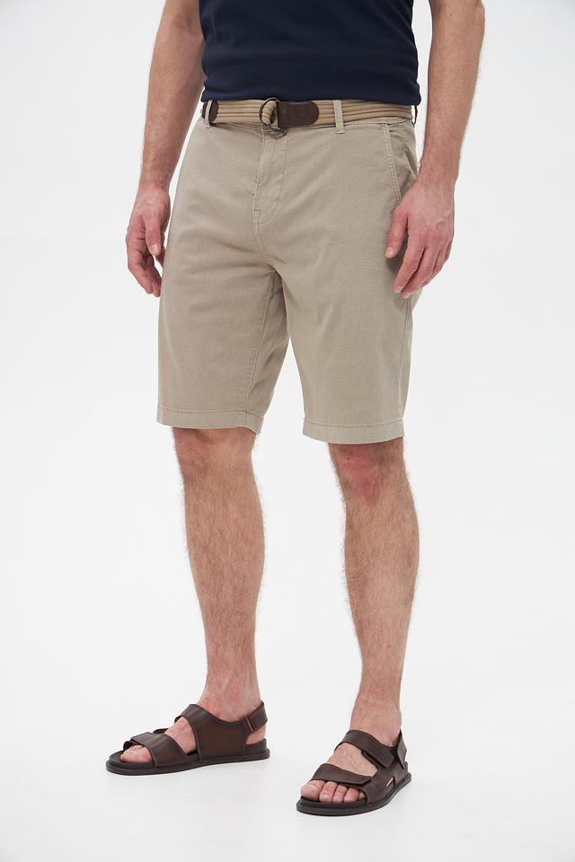 Шорты оснащены удобными боковыми карманами. Застежка на молнию и пуговицу. Модель отлично сочетается с футболками, поло и легкими рубашками, создавая непринужденный и стильный образ.