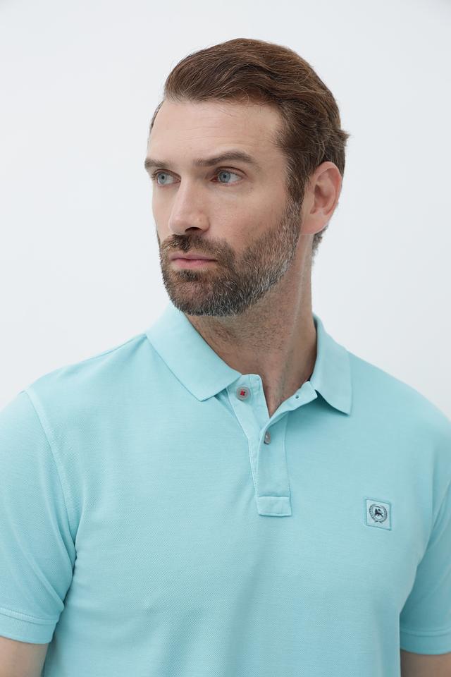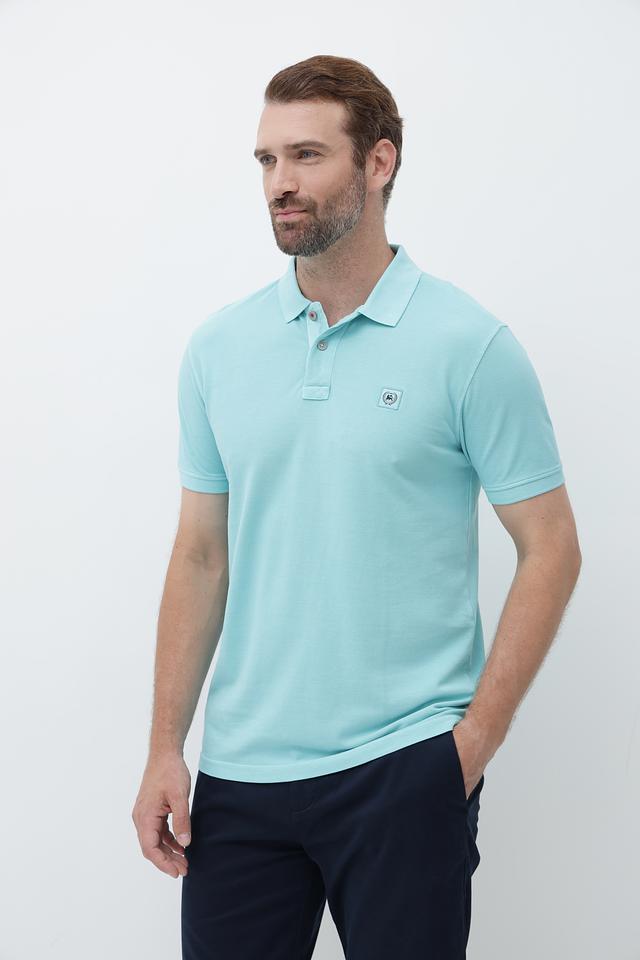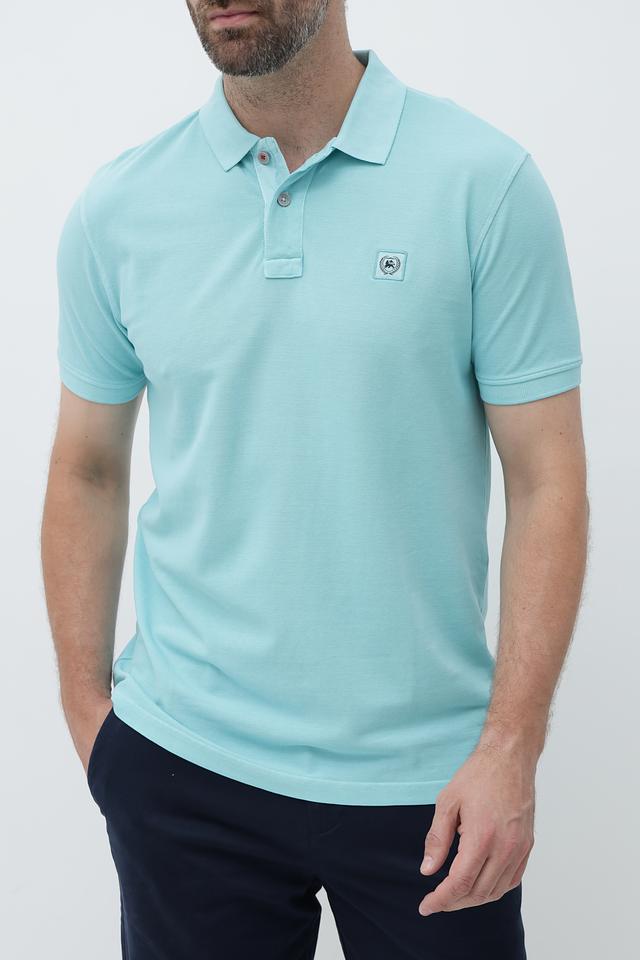 Поло выполнено в нежном мятном цвете, который легко сочетается с различными элементами гардероба. На груди расположена небольшая эмблема бренда, добавляющая изделию узнаваемость.