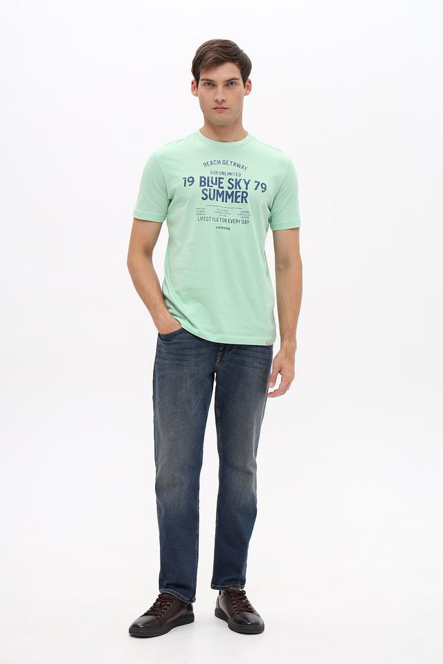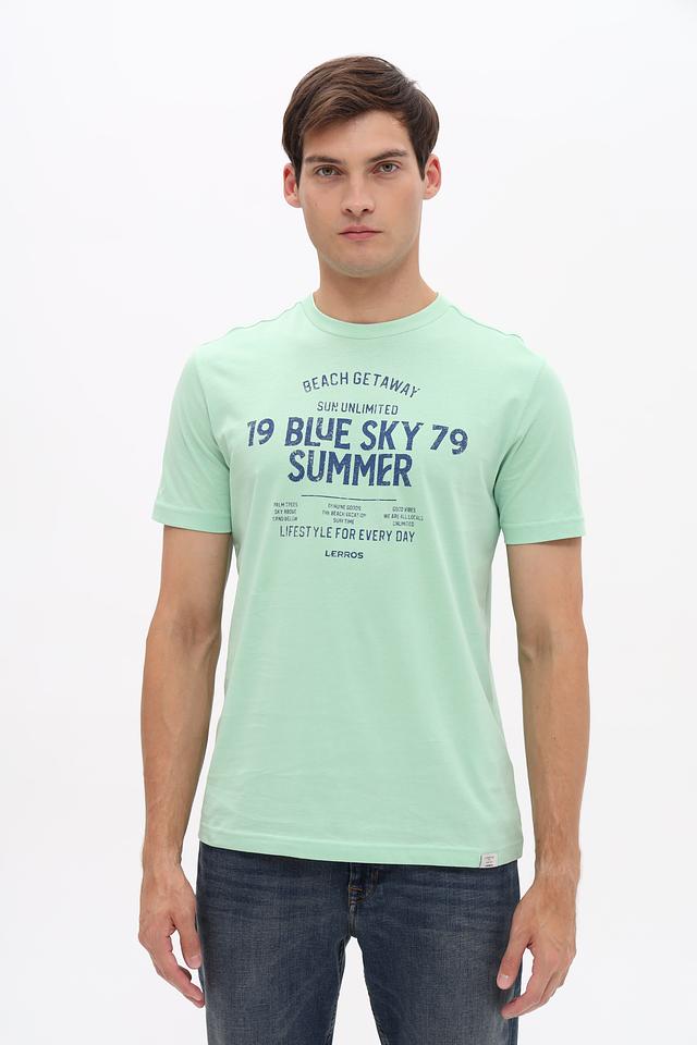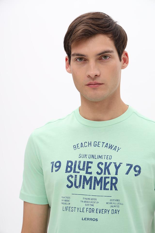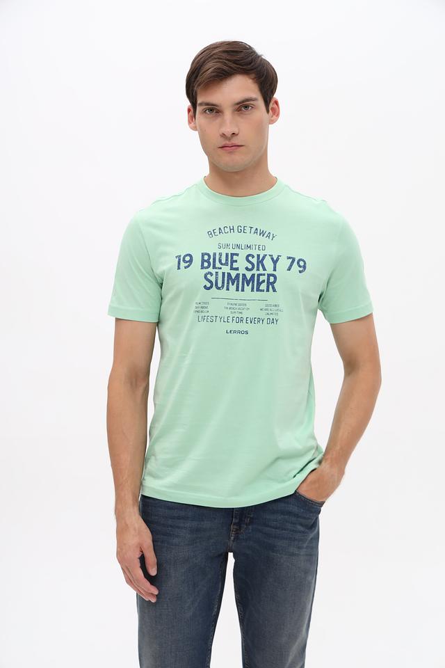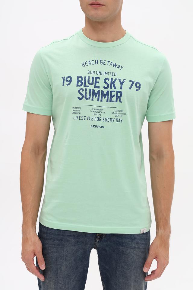 Мятная футболка Lerros из 100% хлопка с ярким принтом в стиле casual. Удобный крой и натуральный состав обеспечивают комфорт в повседневной носке. Состав: хлопок 100%