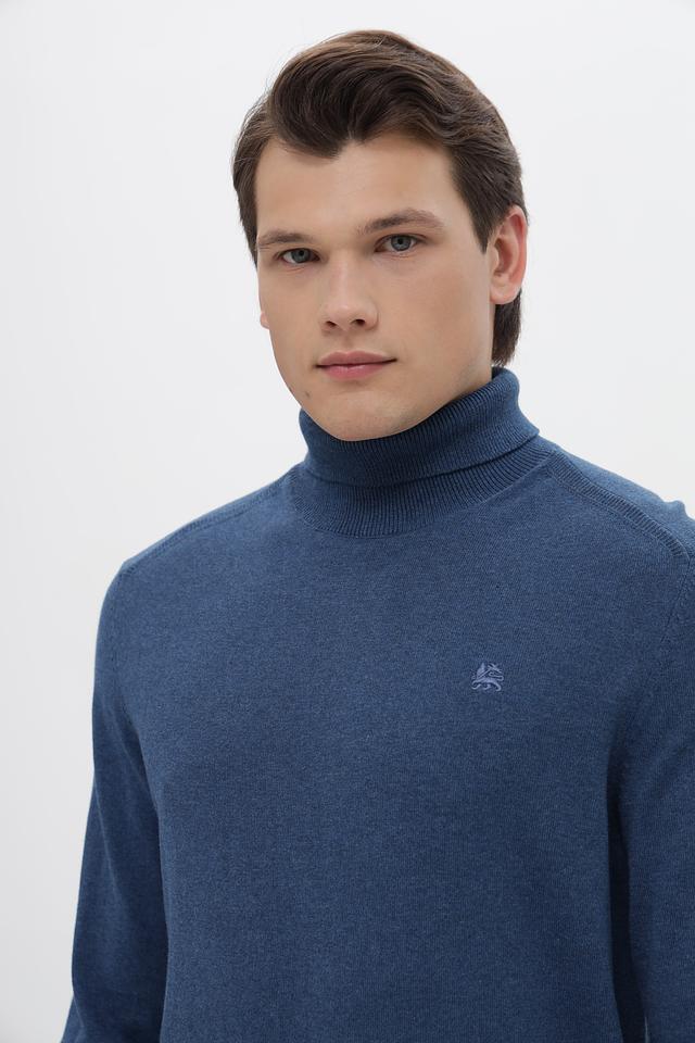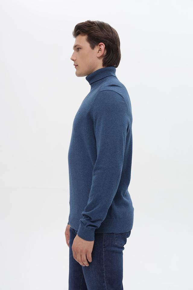 Водолазка имеет классический крой, который хорошо сидит по фигуре и не сковывает движения. Синий цвет придает изделию универсальность, позволяя легко сочетать его с различными элементами гардероба.