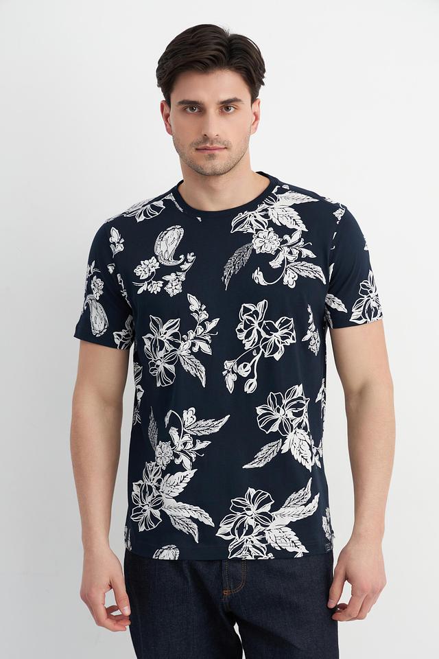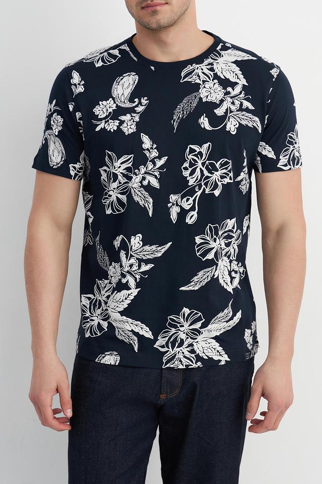 Мужская футболка Lerros темно-синего цвета с ярким цветочным принтом. Изготовлена из 100% хлопка, обеспечивающего комфорт и воздухопроницаемость. Стильный и оригинальный выбор для повседневного образа. Состав: хлопок 100%