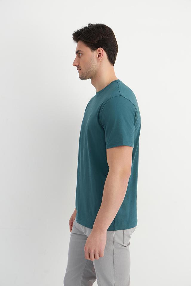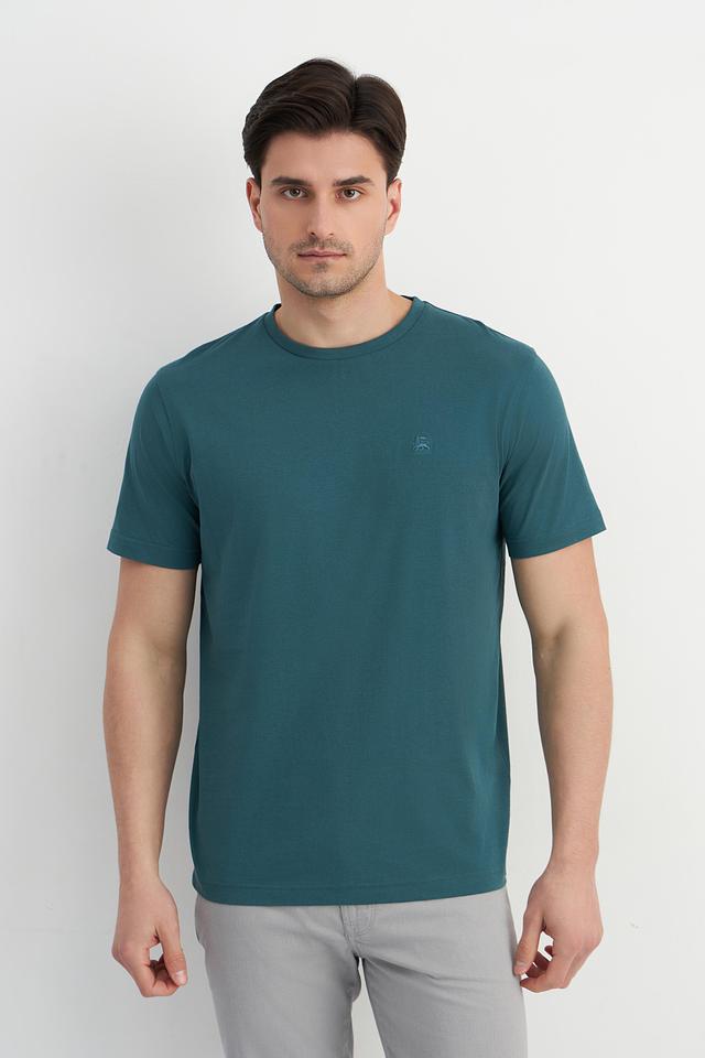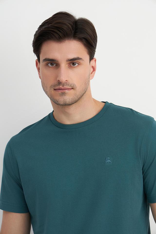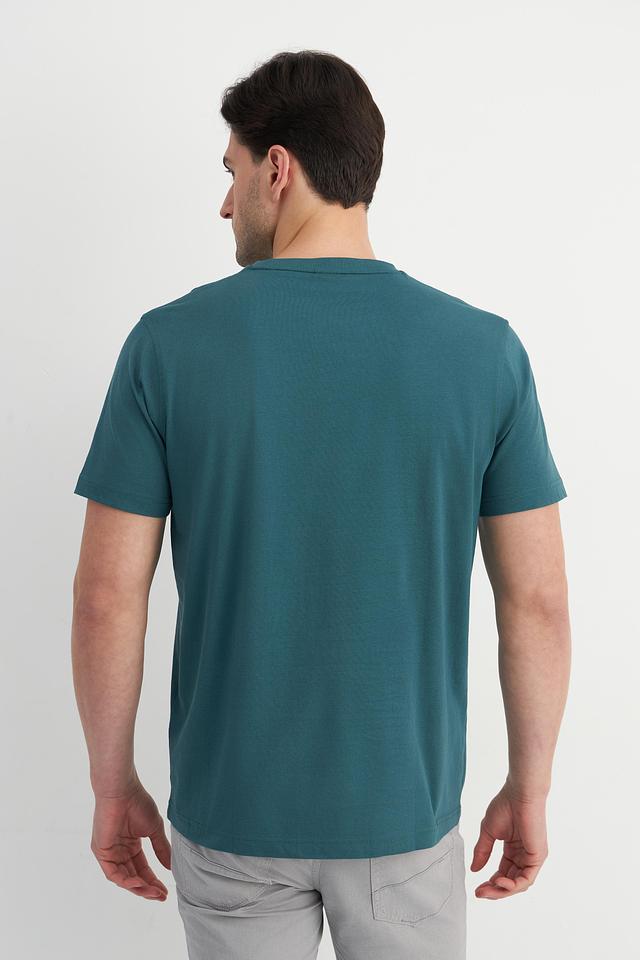 Футболка имеет классический крой и короткий рукав, что делает ее идеальным выбором для повседневной носки. Основной цвет – насыщенный зеленый, который отлично сочетается с контрастной красной отделкой по бокам.