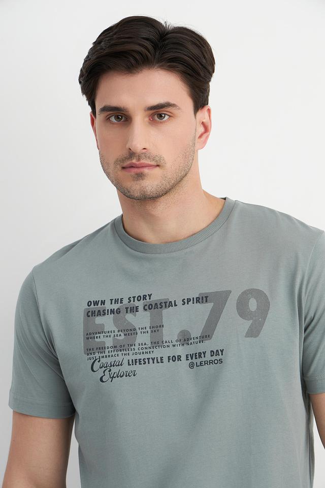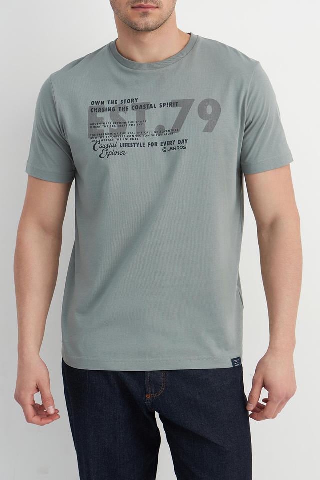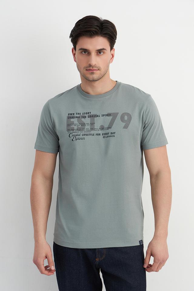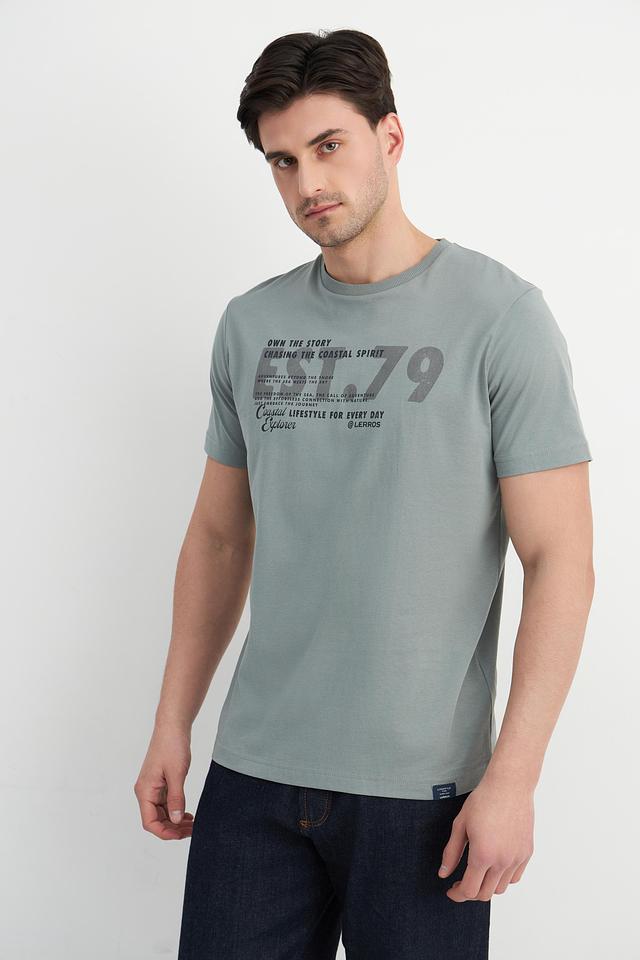 Мужская футболка Lerros серого цвета с оригинальным принтом на груди. Изготовлена из 100% хлопка, обеспечивающего комфорт и воздухопроницаемость. Отличный выбор для повседневного образа. Состав: хлопок 100%