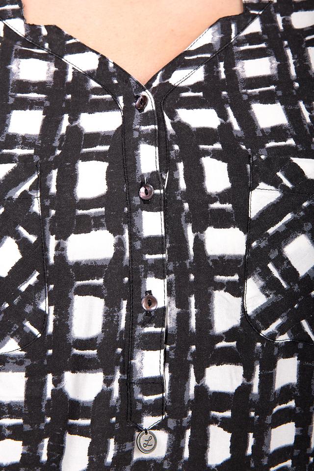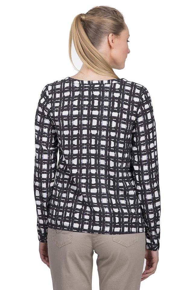 оздушная женская блуза от бренда Lerros. Это легкая блуза в оригинальную черно-белую клетку, дополненная v-образным вырезом, длинным рукавом и нагрудными карманами. Блуза пошита из натуральной вискозы.