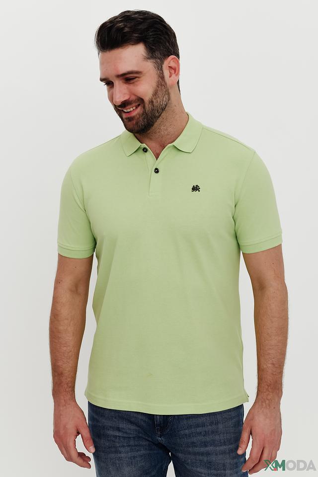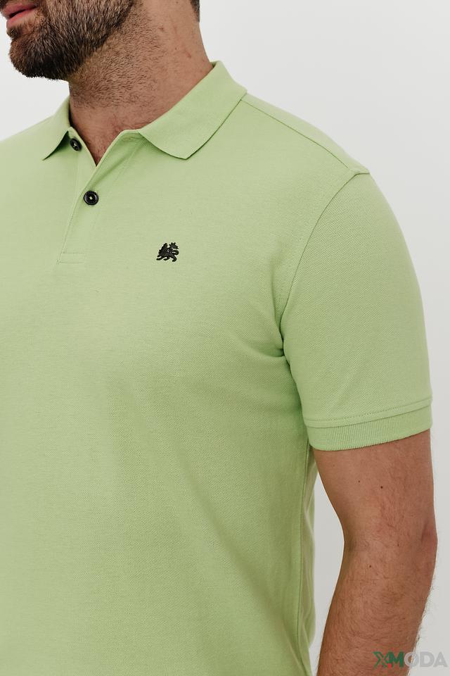 Поло имеет классический крой, который подходит для большинства типов фигур. Лаймовый цвет придает образу свежесть и оригинальность. На груди расположена небольшая вышивка с логотипом бренда, добавляющая изделию узнаваемость.