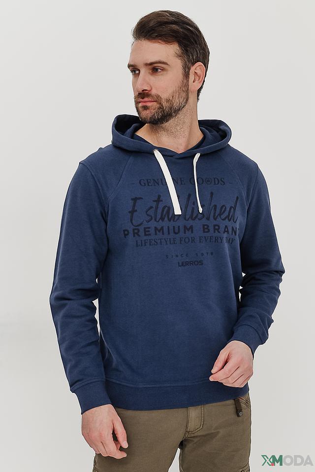 Мужская толстовка Lerros синего цвета с оригинальным принтом на груди. Изготовлена из мягкого и приятного к телу материала, обеспечивающего комфорт в повседневной носке. Отличный выбор для создания стильного и удобного образа. Состав: хлопок 52%, полиэстер 30%, вискоза 18%