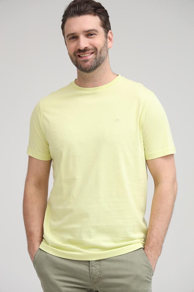 Футболка имеет классический крой и круглый вырез горловины. Лаймовый цвет придает ей свежесть и оригинальность, позволяя создавать яркие и стильные образы.