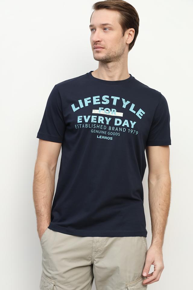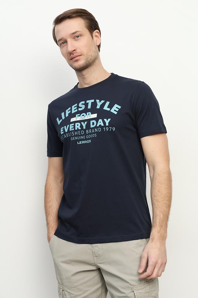 Эта мужская футболка от Lerros станет отличным дополнением к вашему образу. Футболка выполнена в насыщенном синем цвете и украшена ярким принтом с надписью "LIFESTYLE FOR EVERY DAY", что придает ей индивидуальность.