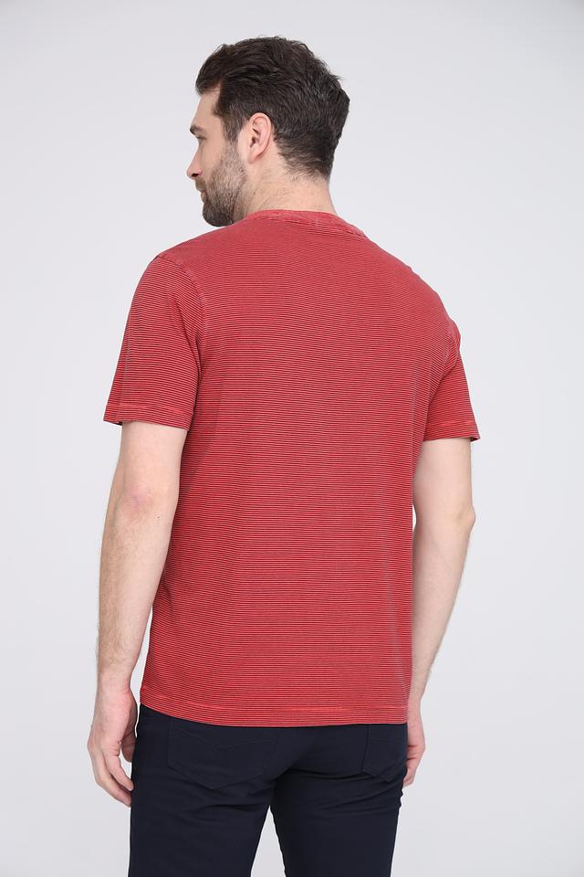 Это мужское поло от Lerros выполнено в красном цвете с выразительным полосатым рисунком. Модель имеет классический крой и короткие рукава, что делает ее идеальным выбором для теплой погоды.