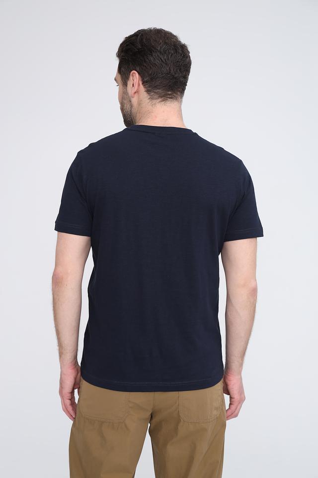 Мужская футболка Lerros тёмно-синего цвета с оригинальным принтом на лицевой стороне. Изготовлена из 100% хлопка, обеспечивающего комфорт и воздухопроницаемость. Стильный и практичный выбор для повседневной носки. Состав: хлопок 100%