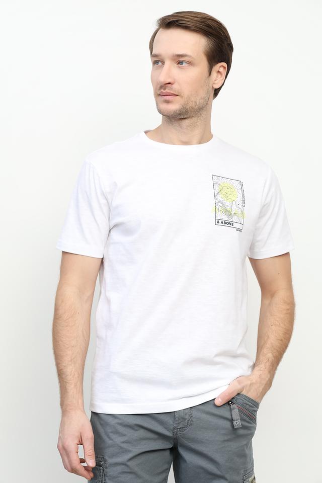 Белая футболка Lerros с оригинальным принтом на груди. Изготовлена из 100% хлопка, обеспечивающего комфорт и воздухопроницаемость. Стильный и универсальный вариант для повседневного образа. Состав: хлопок 100%