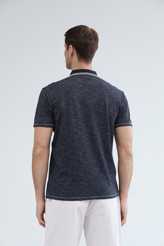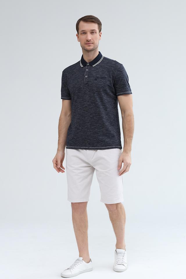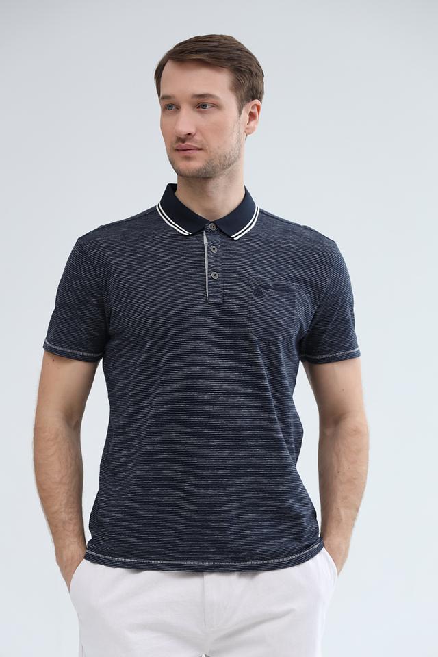 Это мужское поло от Lerros выполнено в синем цвете с мелким рисунком в виде полосок. Классический крой и воротник-поло делают эту модель универсальной и подходящей для различных ситуаций.