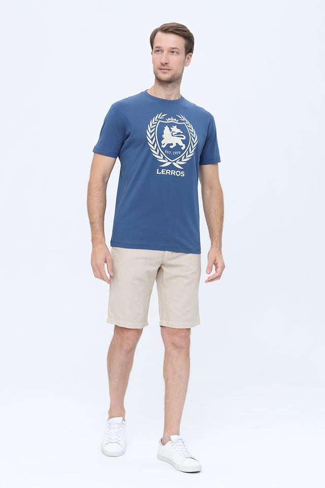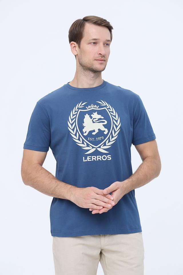 Синяя футболка Lerros с круглым вырезом и оригинальным логотипом на груди. Изготовлена из 100% хлопка, обеспечивающего комфорт и воздухопроницаемость. Стильный и практичный выбор для повседневной носки. Состав: хлопок 100%