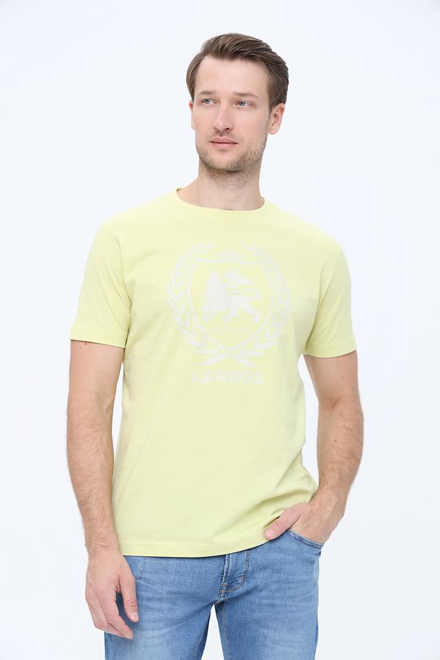 Мужская футболка Lerros лаймового цвета с крупным логотипом на груди. Изготовлена из 100% хлопка, обеспечивающего комфорт и воздухопроницаемость. Отличный выбор для повседневного образа. Состав: хлопок 100%